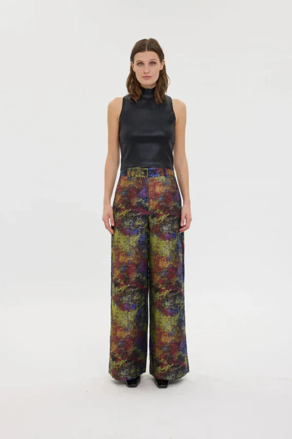 De LAURAFV DAZZLE JACQUARD van FIVE UNITS is een echte blikvanger dankzij de verfijnde jacquardstructuur en elegante pasvorm. Deze high-waist broek met rechte pijpen is gemaakt van een zachte polyestermix met stretch voor ultiem draagcomfort. De subtiele glans en rijke textuur geven elke outfit direct een stijlvolle upgrade. Draag met een zwarte top en hakken voor een avondlook met klasse – shop ‘m nu!
