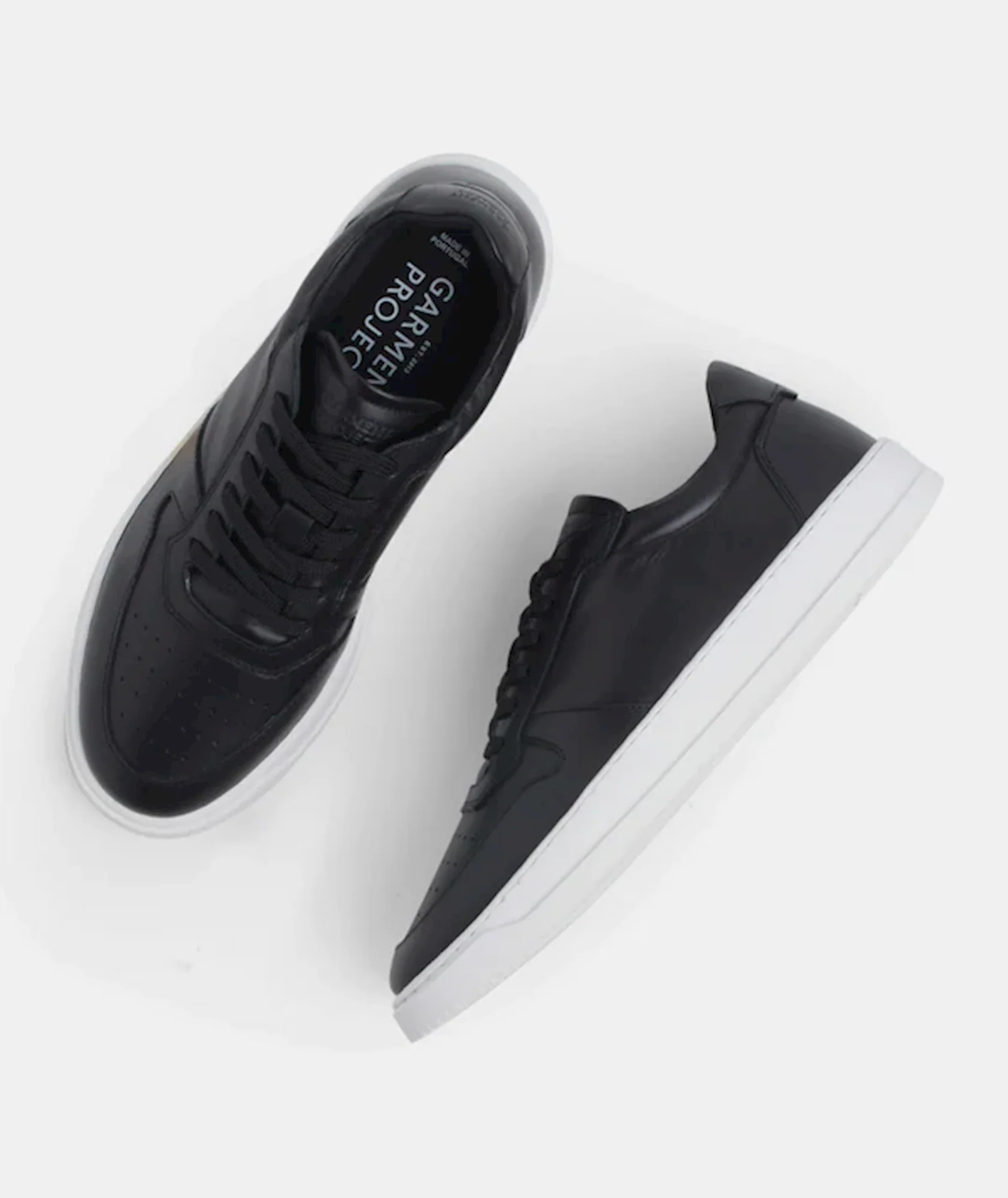 Deze stijlvolle en tijdloze sneakers van GARMENT PROJECT zijn een mooi basisitem voor iedere herengarderobe. De witte zool in combinatie met het zwarte leer maken dit een sneaker die je dagelijks kunt combineren Op de tong van de sneaker staat het GARMENT PROJECT logo.