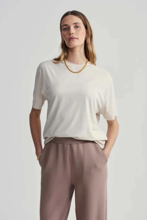 LEIGHTON BOYFRIEND TEE van VARLEY is een must-have met een relaxte, longline boyfriend fit. Gemaakt van een zachte, ademende stofmix voor ultiem comfort. De klassieke ronde hals en losse pasvorm maken het de perfecte basic voor elke dag.