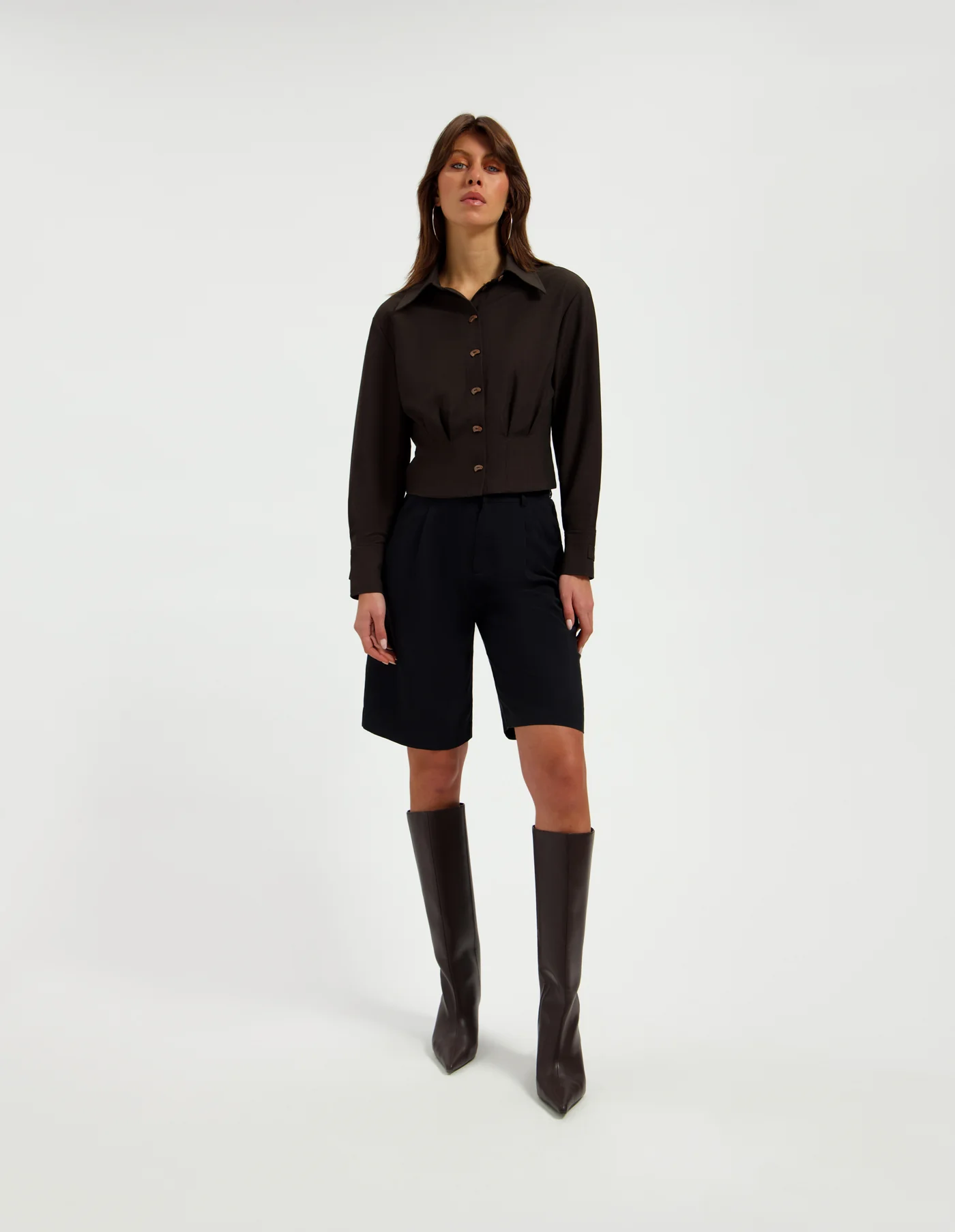 De LINA BLOUSE van AZULAE. Deze verfijnde blouse in de kleur ganache heeft een ontspannen pasvorm met een chique uitstraling dankzij de subtiele glans en zachte valling. De luxe mix van 80% tencel, 5% linnen, 14% rayon en 1% spandex voelt comfortabel aan en ademt kwaliteit. Combineer met de LAYLA PANTS voor een moderne look met een vrouwelijke touch. Shop nu en ontdek jouw nieuwe favoriete set.