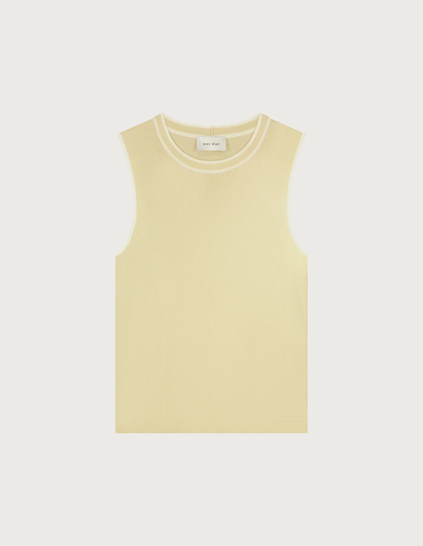 De LISE van AVEC ELAN. Deze frisse mouwloze top in zacht vanille met subtiele ivory contrasten ademt moderne zachtheid en verfijning. De hoogwaardige mix van 70% lyocell, 25% katoen en 15% zijde voelt licht, soepel en comfortabel aan op de huid. Mooi in combinatie met een witte pantalon of een flowy rok voor een elegante, zomerse uitstraling. Shop nu jouw nieuwe favourite layering piece!