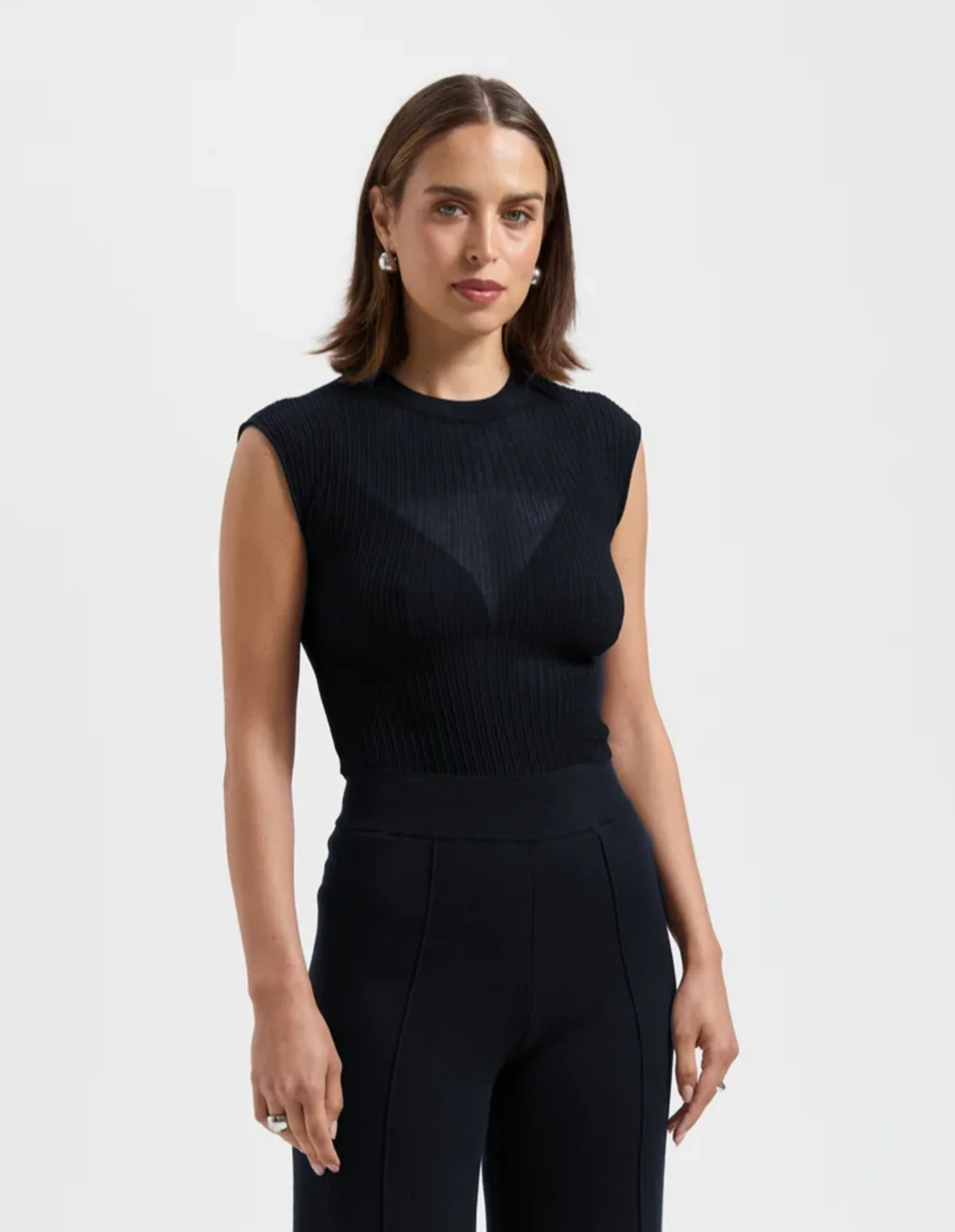 De LOT van AVEC ĒLAN is een licht transparante top zonder mouwtjes. De top is gemaakt van een fijn gebreide kwaliteit, heeft een ronde hals en een nauwsluitende pasvorm. Het is de perfecte top om een klassieke touch te geven aan jouw look. Shop nu in deze tijdloze donkerblauwe kleur.