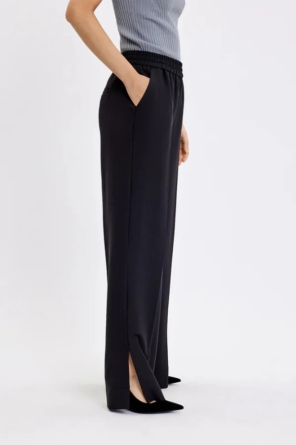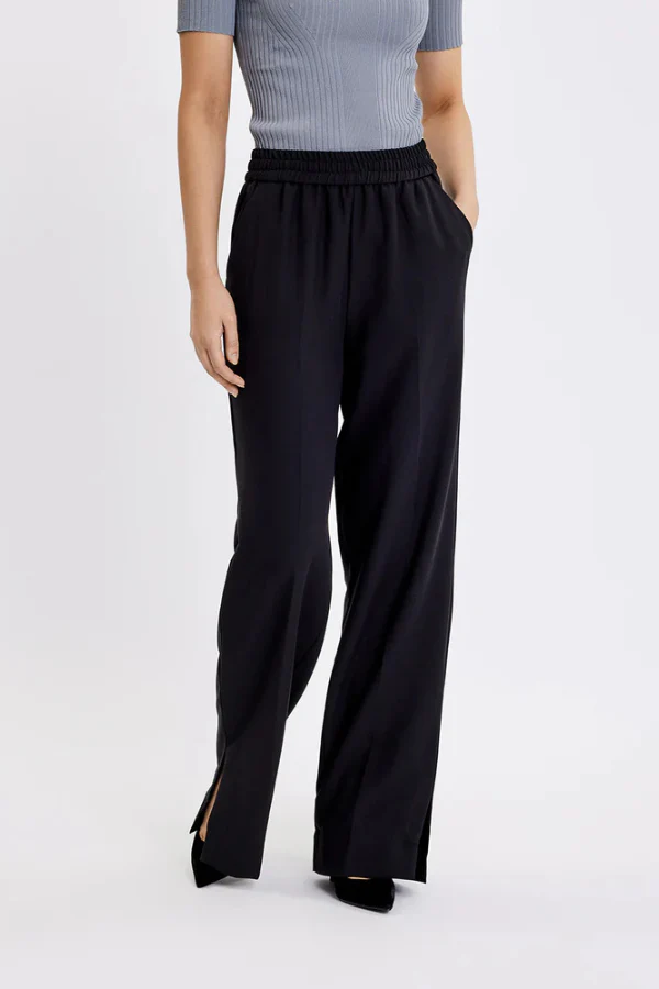 De LOUISEFV SPLIT – LONG van FIVE UNITS is een elegante, recht gesneden pantalon van zacht crepe-weefsel met een hoog tempo en elastische taille. Het mixmateriaal geeft de broek een luxueuze, soepel vallende kwaliteit met voldoende stretch voor dagelijks comfort. De split in de pijp en de geperste plooi zorgen voor een stijlvolle, moderne look die zowel formeel als nonchalant gedragen kan worden. Combineer ‘m moeiteloos met een lichte blouse en loafers voor een tijdloze, chique uitstraling.