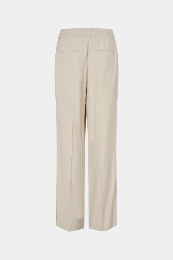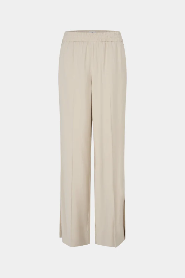 De LOUISEFV SPLIT 802 in Vanilla is een minimalistische broek met een moderne twist. De elastische tailleband zorgt voor ultiem comfort en bewegingsvrijheid, terwijl de geperste plooien een verfijnde uitstraling geven. Subtiele splitten in de pijpen voegen een eigentijdse, coole touch toe – perfect voor een stijlvolle, maar moeiteloos draagbare look.