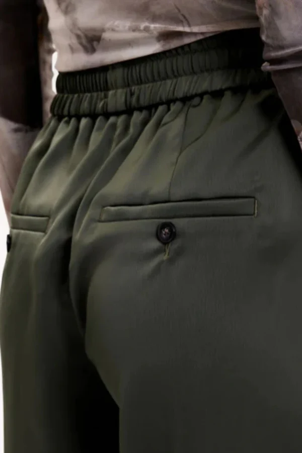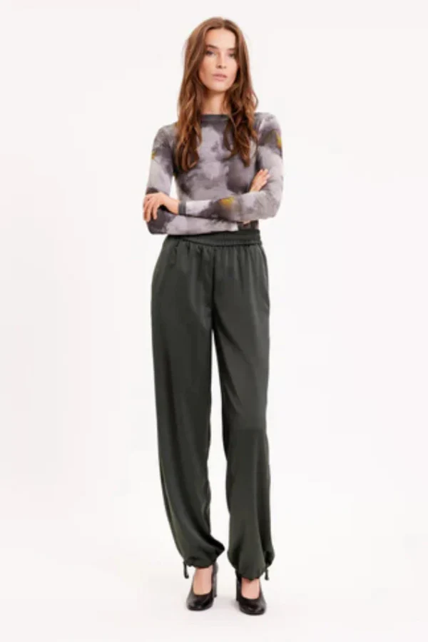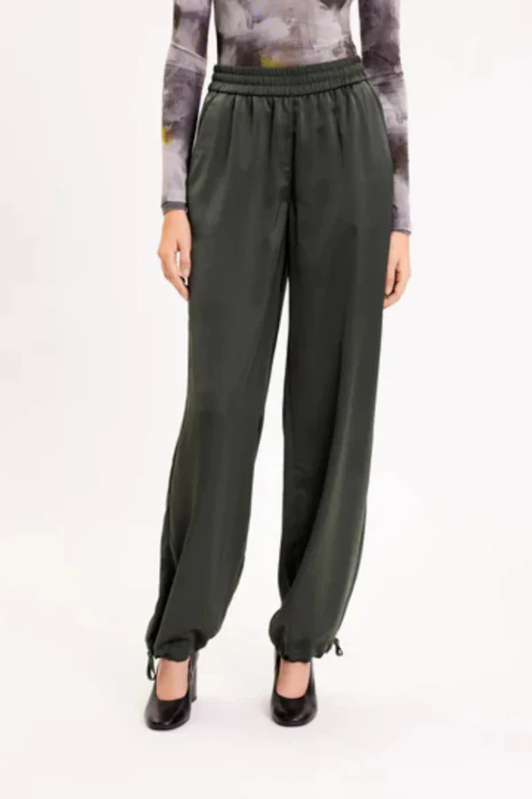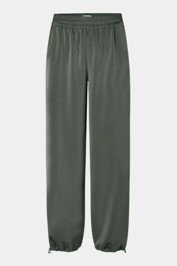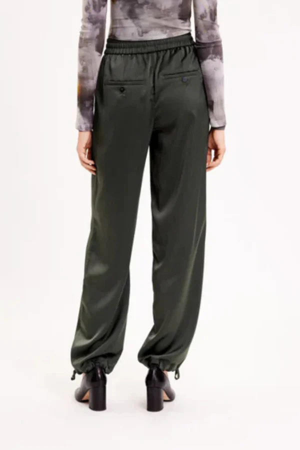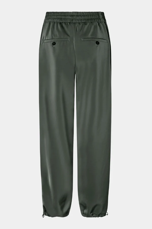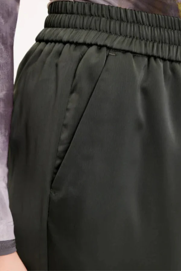 De LOUISEFV TIE broek van FIVE UNITS in de kleur Dark Forest is een loose-fit broek gemaakt van een zijdezacht satijngeweven materiaal voor een moeiteloos elegante uitstraling. De broek heeft een rechte pasvorm en een elastische tailleband voor optimaal comfort en flexibiliteit. De verstelbare strikbanden aan de boorden geven de broek een speelse en verfijnde touch. Perfect voor zowel casual als chique gelegenheden.