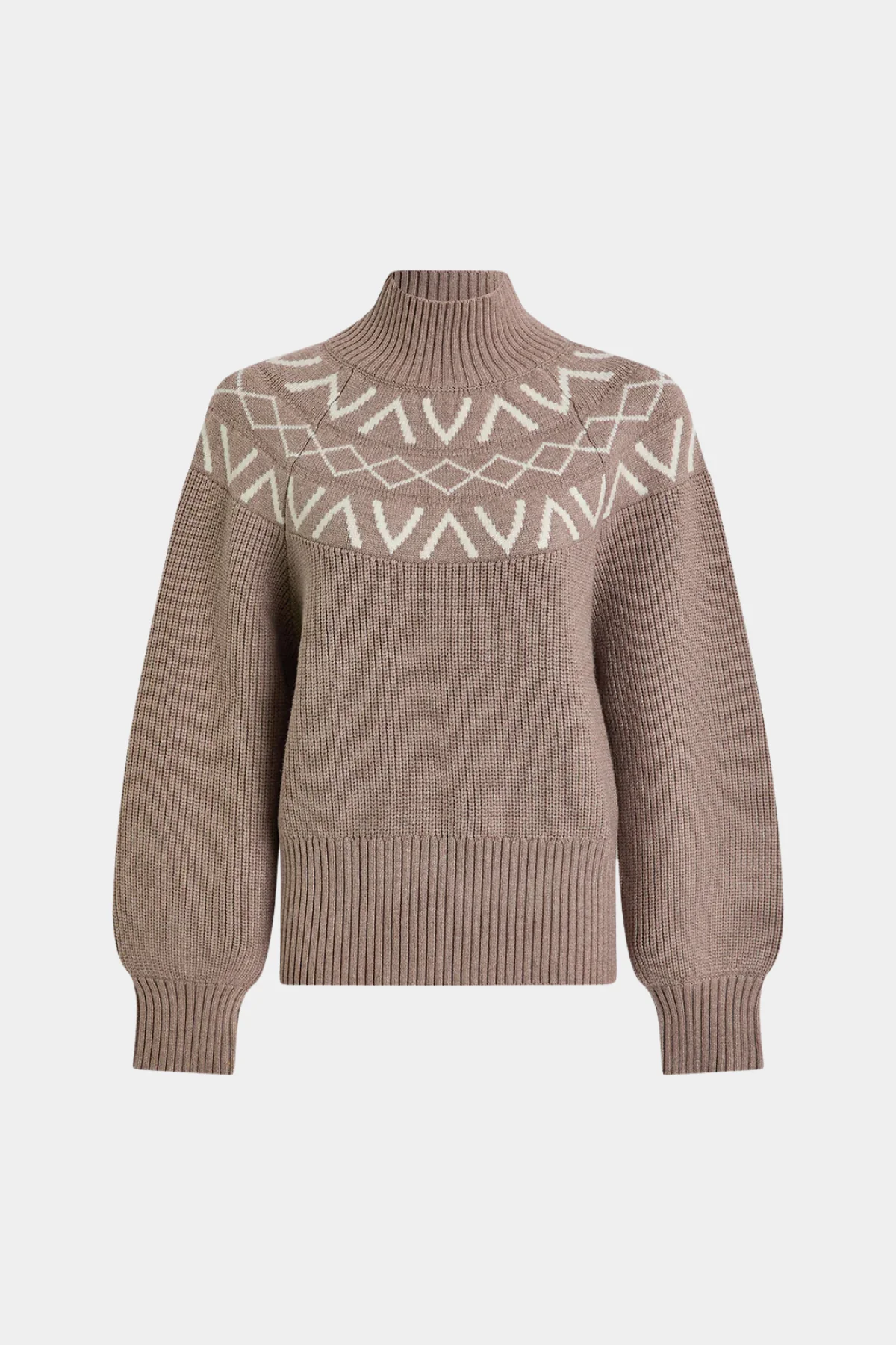 De MARCIE FAIRISLE YOKE KNIT van VARLEY is een stijlvolle knit met een klassiek Fairisle-patroon die warmte en elegantie moeiteloos combineert. Deze trui heeft een relaxte pasvorm met verlaagde schouders en een zachte, gemêleerde taupetint. De hoogwaardige mix van viscose, nylon en polyester zorgt voor een comfortabel en duurzaam draaggevoel. Combineer met een leren broek of midi-rok voor een verfijnde winterlook shop nu jouw knitwear essential!