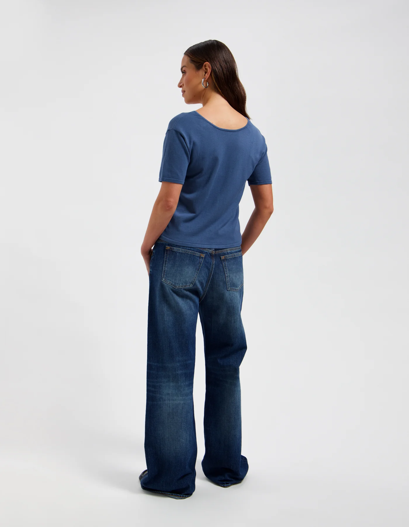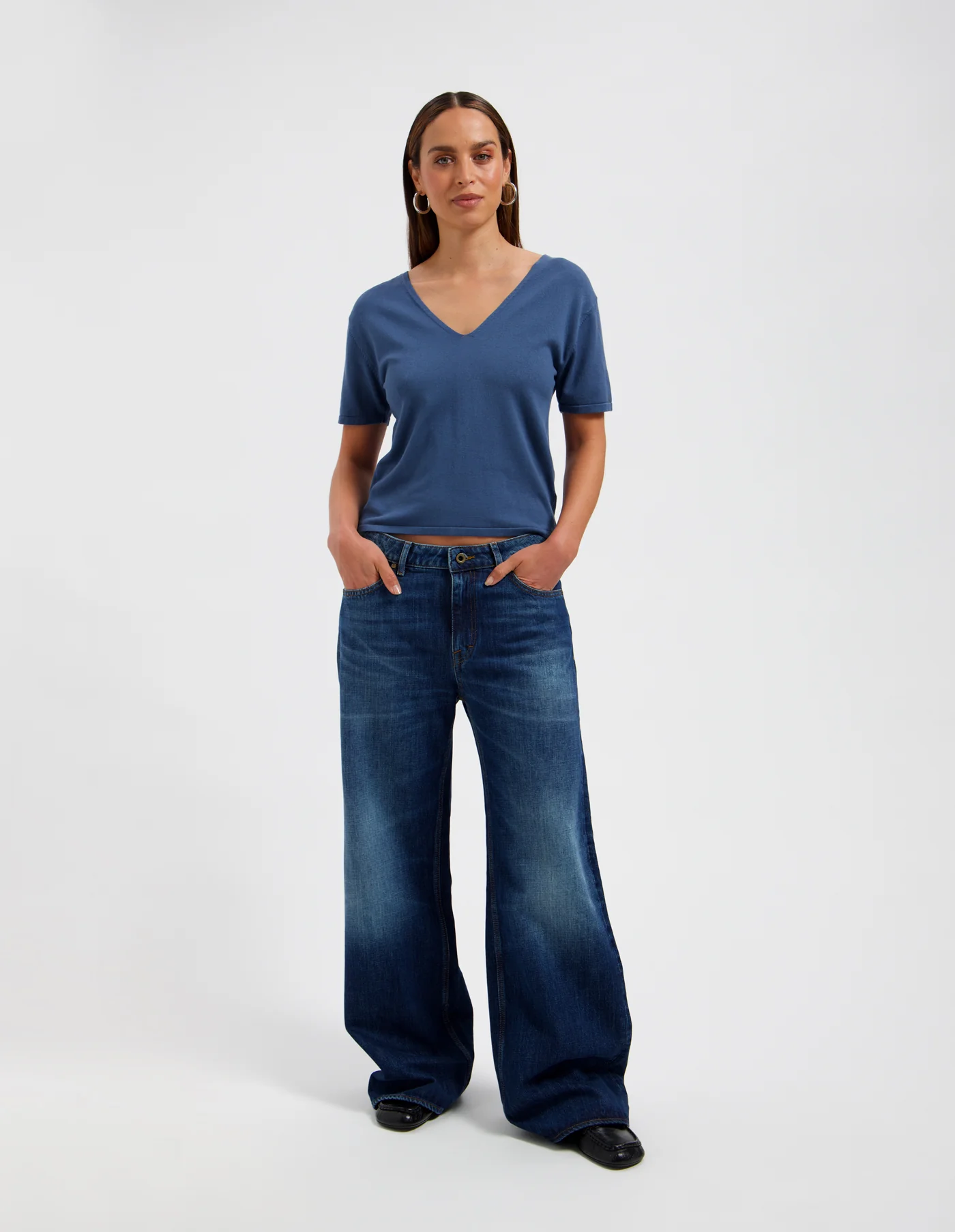 De MELINA van AVEC ELAN. Deze elegante top in een diepe blauwgrijze tint heeft een zachte V-hals en een semi-transparante structuur die zorgt voor een verfijnde, gelaagde uitstraling. De blend van 70% viscose en 30% polyamide voelt luchtig, soepel en comfortabel aan op de huid. Mooi te combineren met lichte tinten of ton-sur-ton voor een stijlvolle en ingetogen look. Shop nu jouw nieuwe sophisticated layering piece!