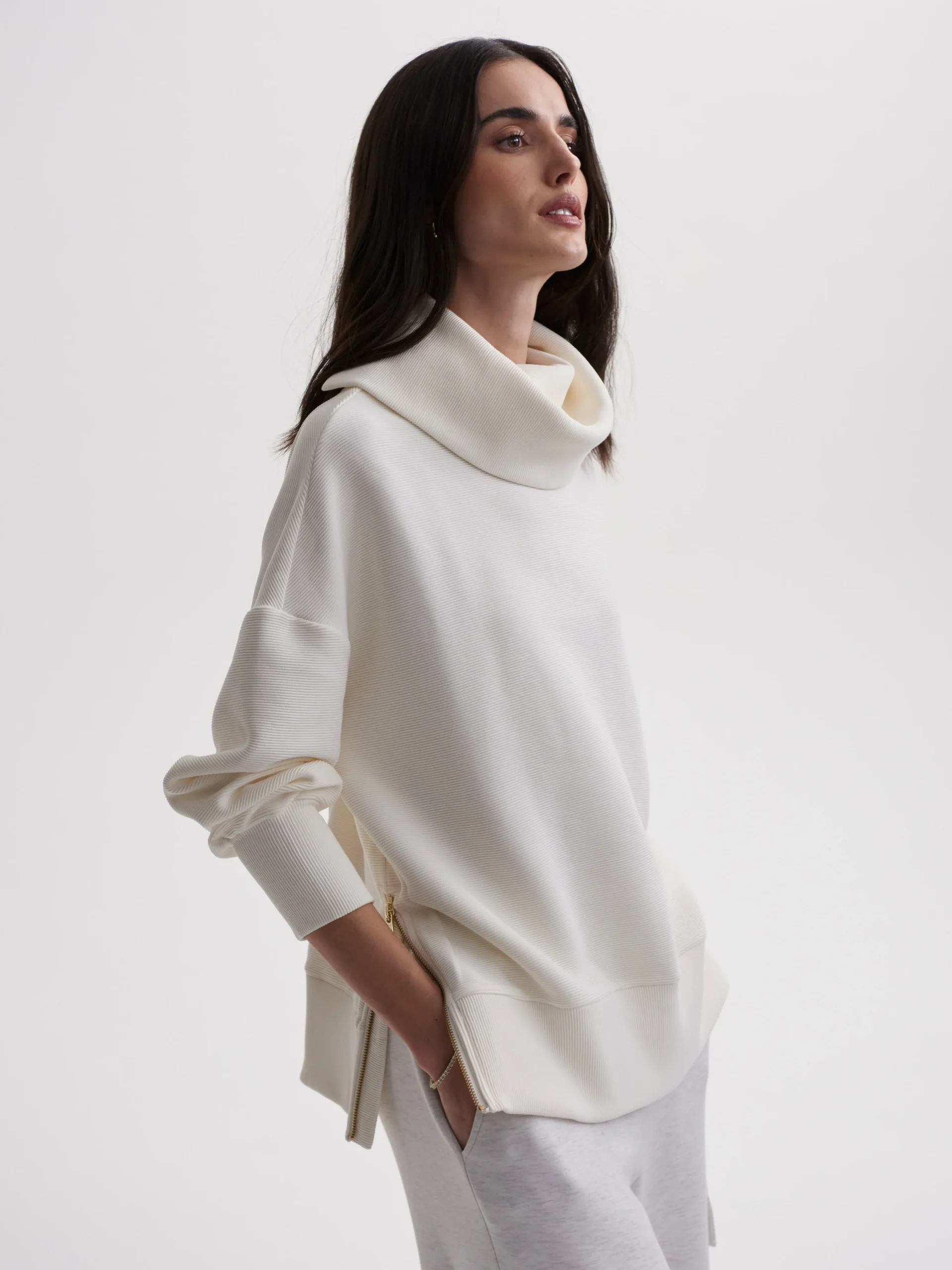 MILTON SWEAT van VARLEY is een oversized sweatshirt van ribbed Ottoman-stof, perfect voor dagelijks comfort. Met bellowed sleeves, zijritsen, dropped shoulders en een relaxte col combineert het moeiteloos stijl en functionaliteit.