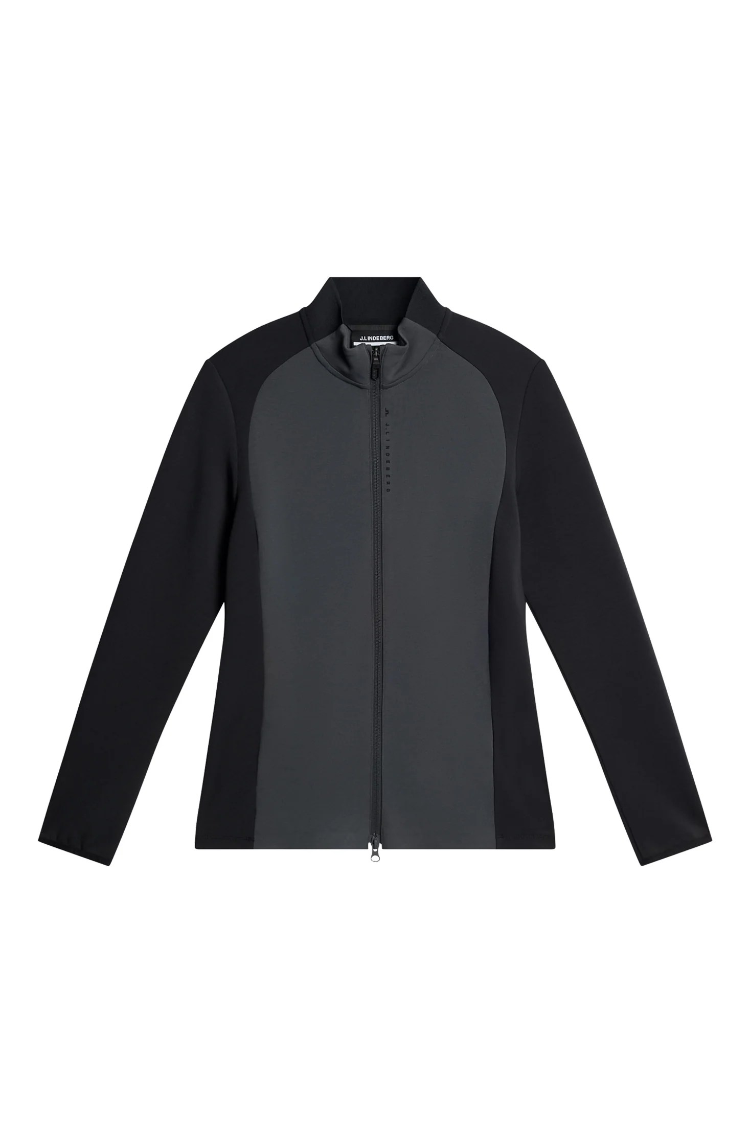 De NAMI ZIP MID LAYER BLACK van J.LINDEBERG GOLF is een functionele midlayer met een strakke pasvorm en een volledige rits, ontworpen voor sportieve prestaties met een stijlvolle uitstraling. Gemaakt van een ademende, sneldrogende technische jersey, biedt dit item comfort tijdens elke activiteit. De klassieke zwarte kleur en subtiele details maken het veelzijdig en moeiteloos te combineren. Draag als laag onder een jas of solo voor een sportief-elegante look. Shop nu en upgrade je actieve garderobe.