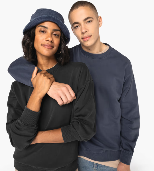 De oversized pasvorm met afhangende schouders zorgt voor een relaxte look, terwijl de ribboorden aan de kraag, mouwuiteinden en onderkant extra vormbehoud en draagcomfort bieden. Dankzij de speciale verfbehandeling na montage heeft elk sweatshirt subtiele kleurnuances, wat bijdraagt aan een unieke vintage uitstraling. Afgewerkt met ton-sur-ton nektape in kepermotief en een verstevigde halvemaan op de rug. Deze oversized Native Spirit sweatshirt is perfect om in te zetten voor jouw merk of bedrijf.