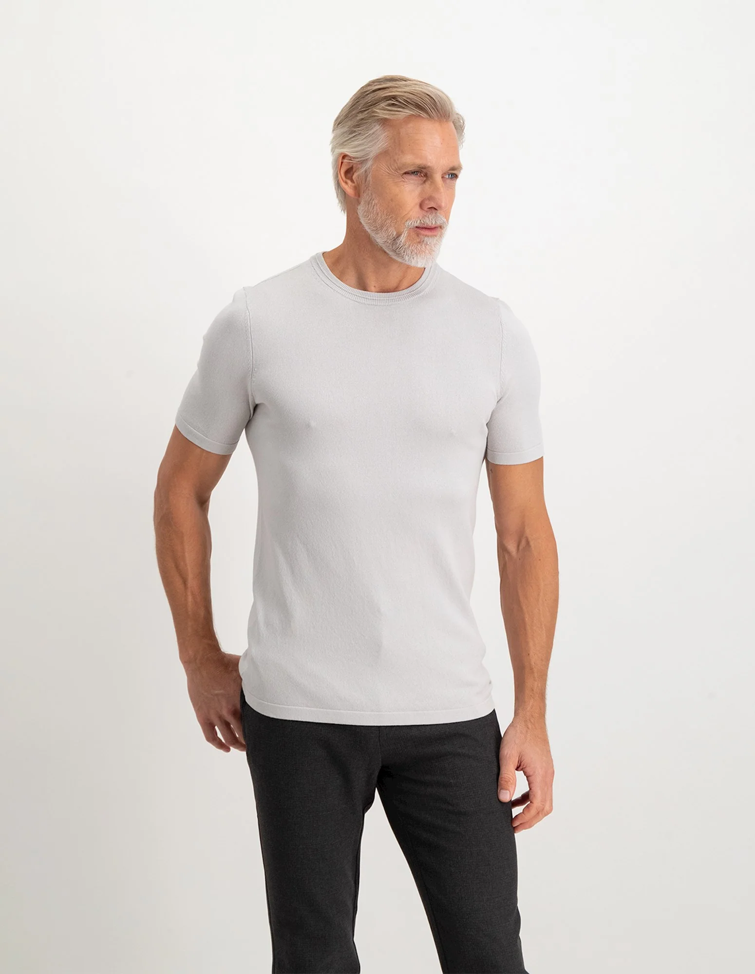 Koel, stijlvol en comfortabel! Dat is het nieuwe NIELS T-shirt van SAINT STEVE. Het T-shirt is gemaakt van linnen & viscose materiaal. Dit geeft het T-shirt een luxueuze uitstraling en daarnaast een ademende functie. Daarom is dit T-Shirt een mooie toevoeging aan jouw zomergarderobe. De KIT GREY kleur combineer je makkelijk met een donkere of jeans kleurige short of broek.