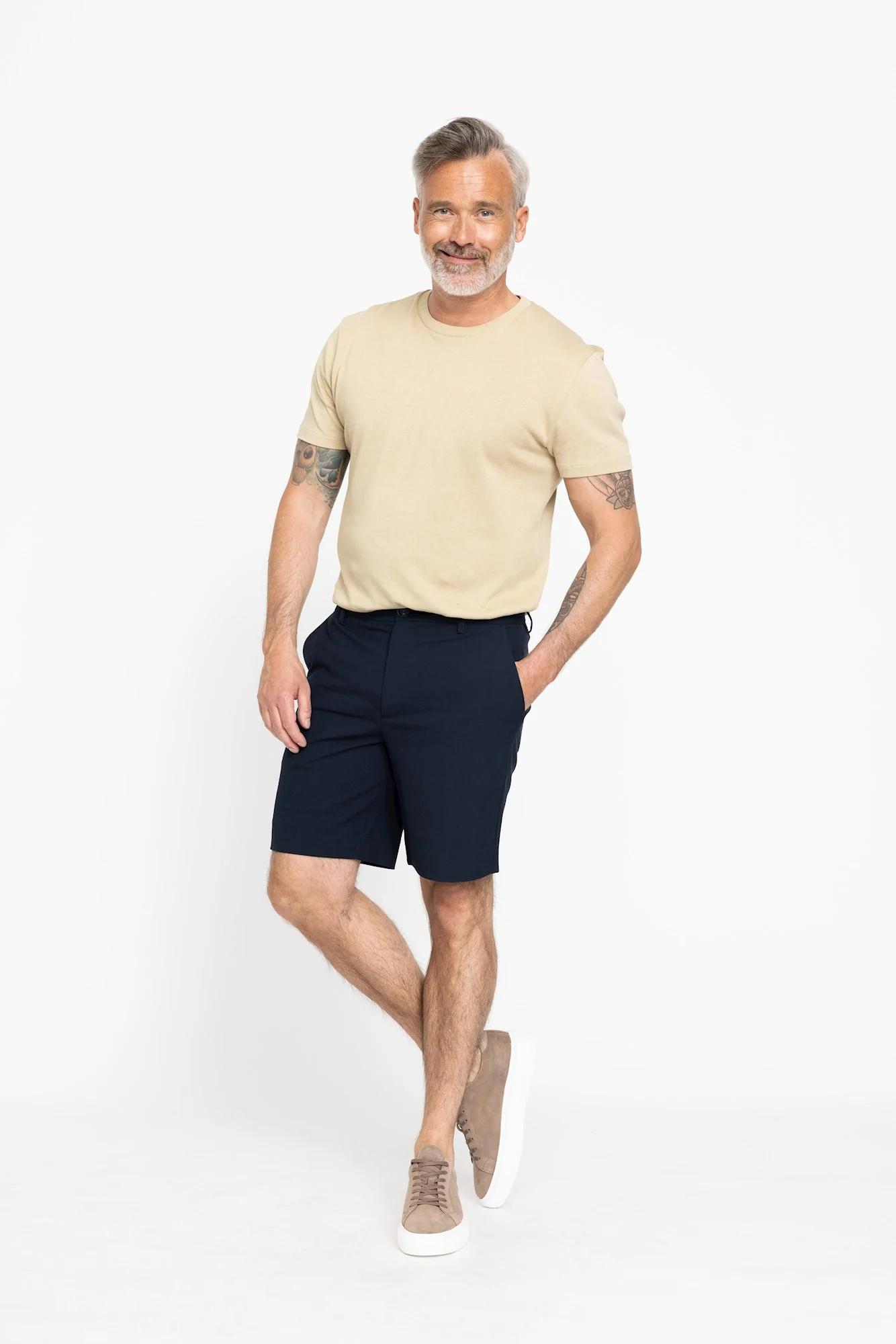 Deze korte broek voor heren van PLAIN heeft een nette uitstraling. Details van deze korte broek zijn de riemlussen, rechte zakken en de paspelzakken aan de achterkant. De korte broek is gemaakt van een bijna kreukvrije stof die mooi in model blijft. Combineer deze donkerblauwe short met een wit overhemd voor een nette look of een basic t-shirt voor een tijdloze uitstraling.