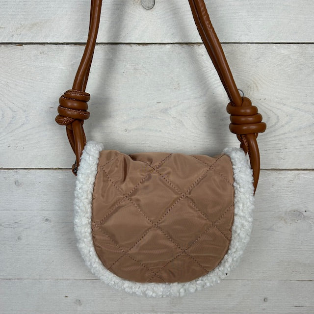 Leuk schoudertasje. Het tasje is gaaf afgewerkt met een padded design en teddy details. De tas heeft naast een groot vak, ook nog een klein vakje met ritssluiting aan de binnenkant.
