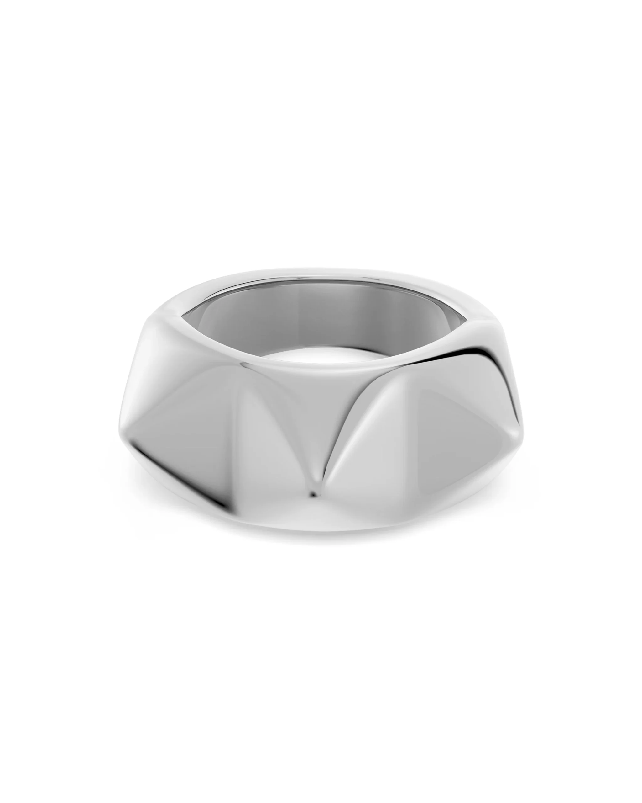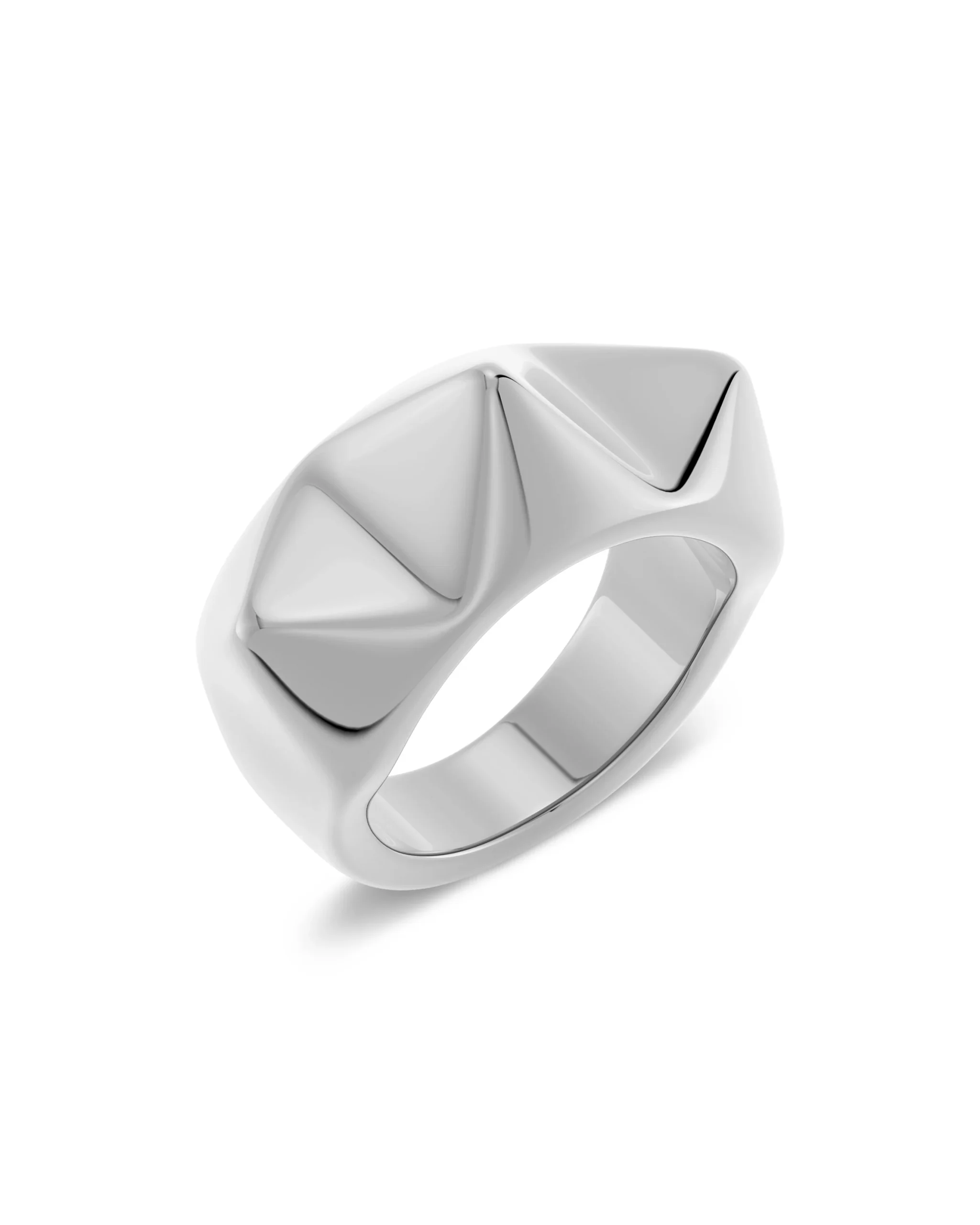 De Peak Rivet ring is een bredere ring met vierkante studs met afgeronde hoeken, onderdeel van de populaire Peak-serie. Deze tijdloze en elegante ring is perfect voor dagelijks gebruik en kan mooi gestapeld worden met andere ringen. De Peak Rivet ring is hier te zien in glanzend roestvrij staal, en voegt een verfijnde uitstraling toe aan elke look.