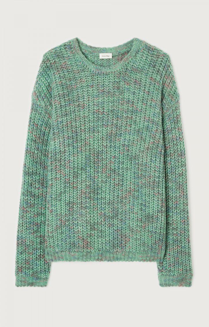 Met deze gebreide trui van AMERICAN VINTAGE zorg je dat je stijlvol de dag doorkomt. De kleur melange en grovere brei structuur geven de trui een trendy uitstraling. Het is een veelzijdige trui die je makkelijk combineert met een jeans of mooie pantalon. Draag deze prachtige trui wanneer jij het wilt voor een stijlvolle look.