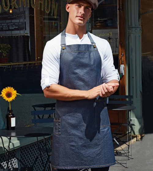 Premier District Waxed Look Denim Bib unisex Sloof bedrukken of borduren