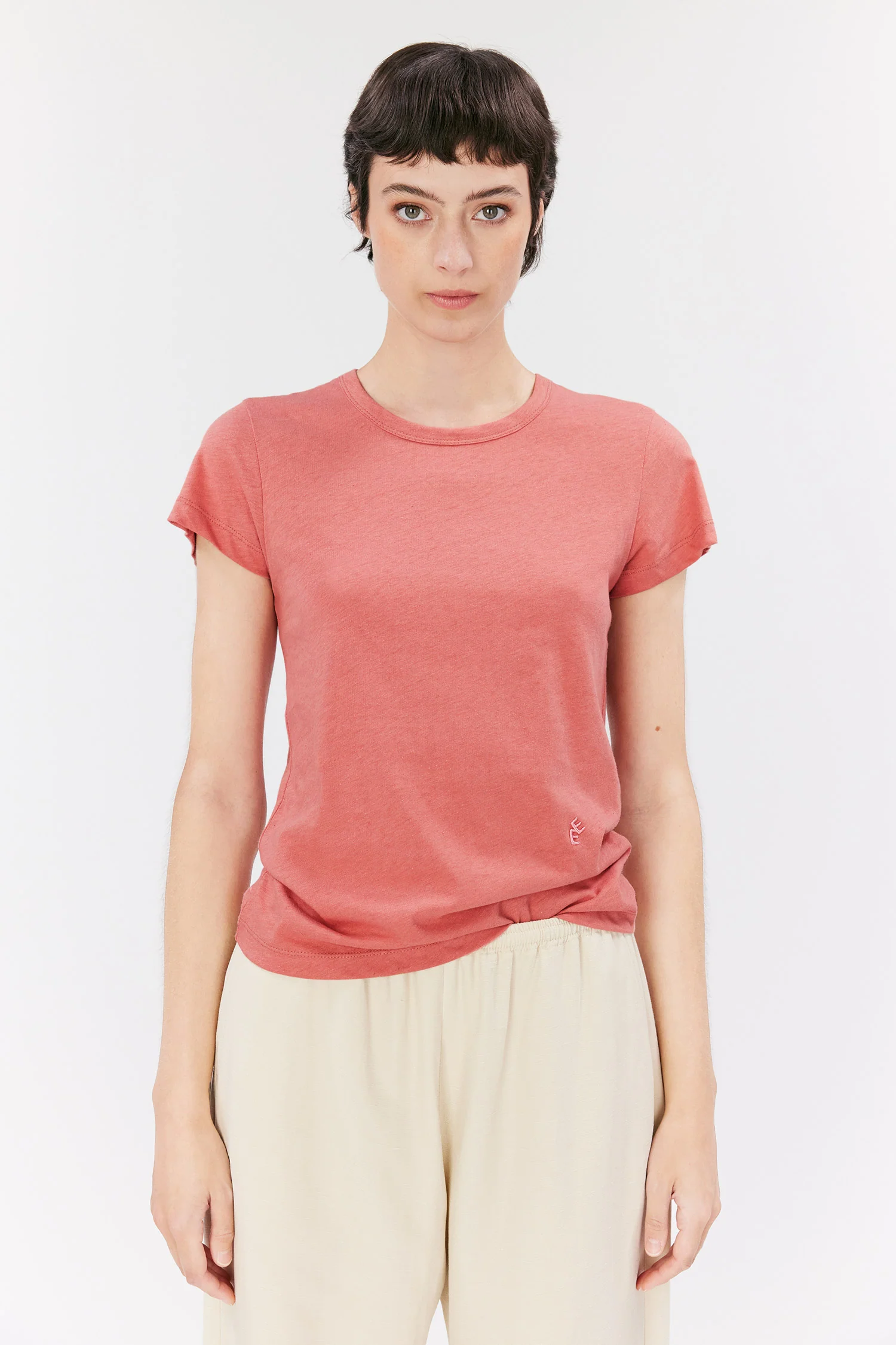 Regan is een slim-fit T-shirt gemaakt van een luxueuze mix van katoen en linnen. Het materiaal voelt zacht aan, ademt goed en draagt heerlijk comfortabel op warme dagen. Dankzij de tijdloze pasvorm en het luchtige karakter is Regan een absolute essentie voor elke garderobe.
