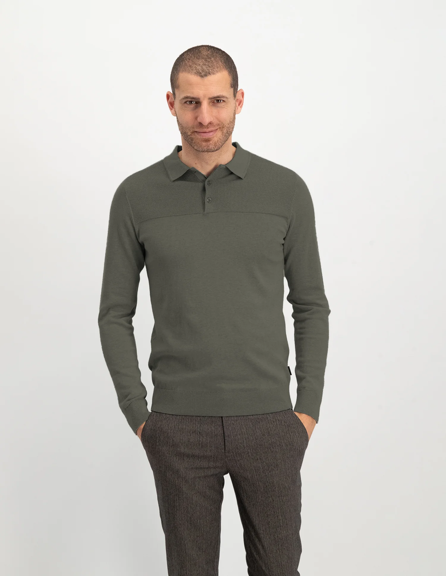 Deze polo met lange mouwen en normale pasvorm is perfect om dagelijks te dragen. De polo is gemaakt van 100% katoen en voelt zacht aan. Een mooi detail van de polo is de subtiele structuur aan de bovenkant.