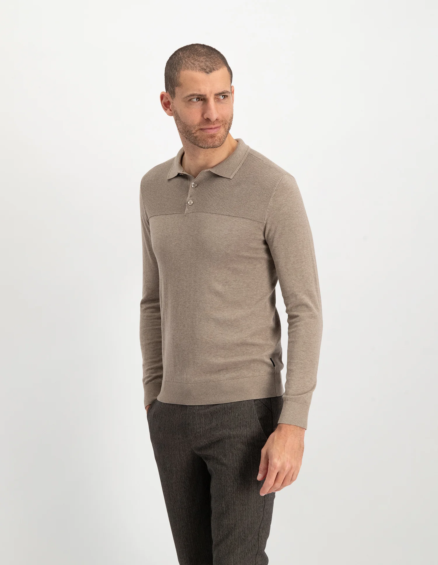 Deze polo met lange mouwen en normale pasvorm is perfect om dagelijks te dragen. De polo is gemaakt van 100% katoen en voelt zacht aan. Een mooi detail van de polo is de subtiele structuur aan de bovenkant.