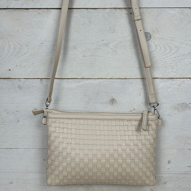 Schoudertas met gevlochten motief beige