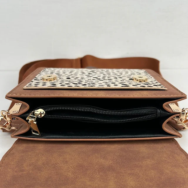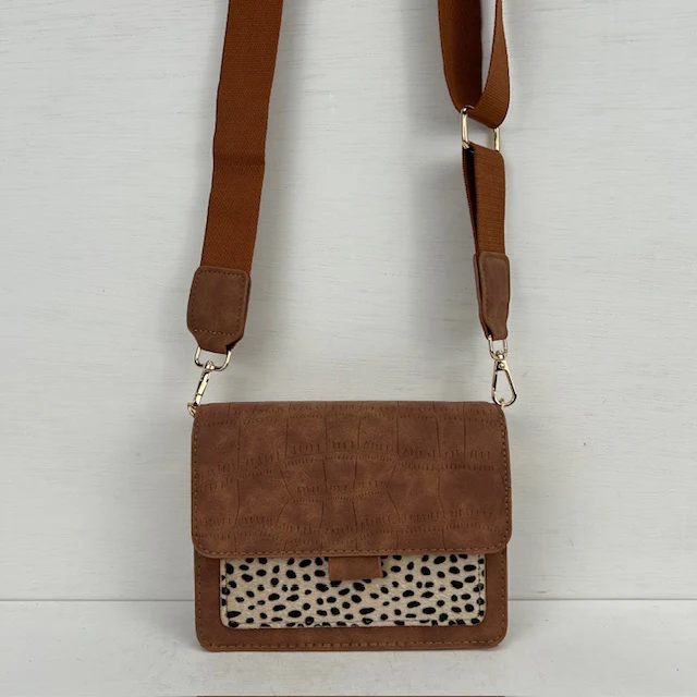 Geweldig schoudertasje! Het tasje is afgewerkt met een trendy dierenprint. Het tasje heeft naast een groot vak ook nog een kleiner vakje op de voorkant, en een klein vakje met ritssluiting aan de binnenkant. Het tasje wordt geleverd met een verstelbare band.