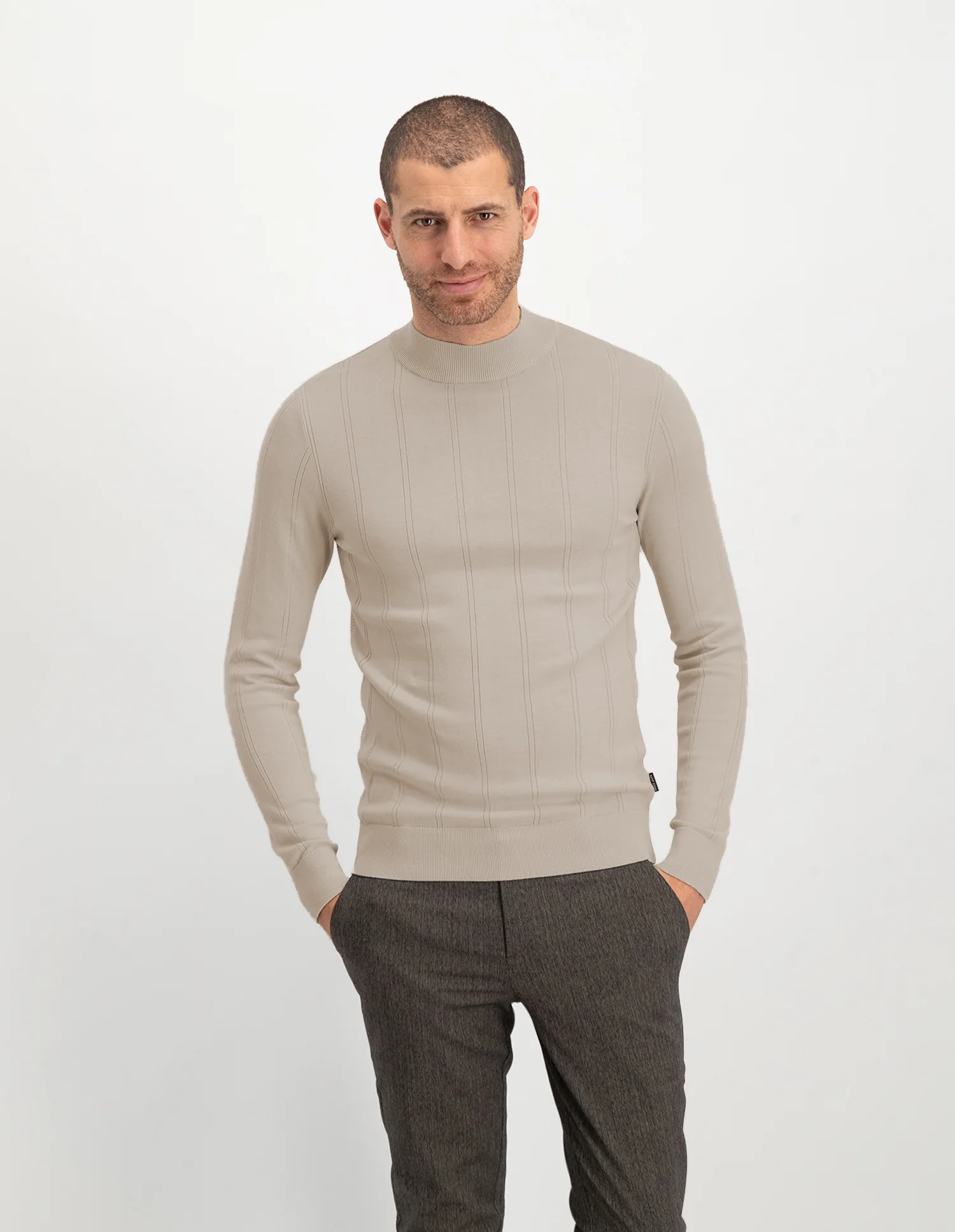 De SEAN is een trui met een mock neck trui en een normale pasvorm. Een mooi detail aan de trui is de doorgetrokken naad. De trui is gemaakt van 100% katoen en voelt fijn zacht aan.
