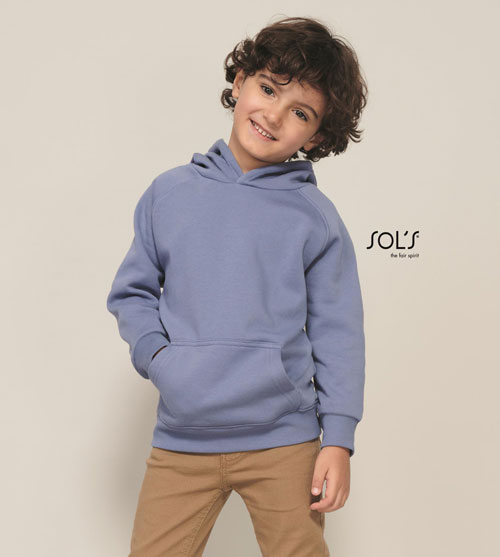 De Sol’s Stellar Sweatshirt kinder hoodie is door de opgeruwde binnenzijde en jersey voering in de capuchon ideaal voor de koudere dagen. De gevormde zijnaden, gekruiste hals en raglanmouwen zorgen daarbij voor een prachtige look. De verhoogde print- en borduurbaarheid van het biologische katoen maken de Sol’s Stellar Sweatshirt kinder hoodie ook nog eens erg geschikt voor jouw ontwerp. De ideale uitgangspunten om met deze hoodie promotiekleding te creëren voor jouw merk.