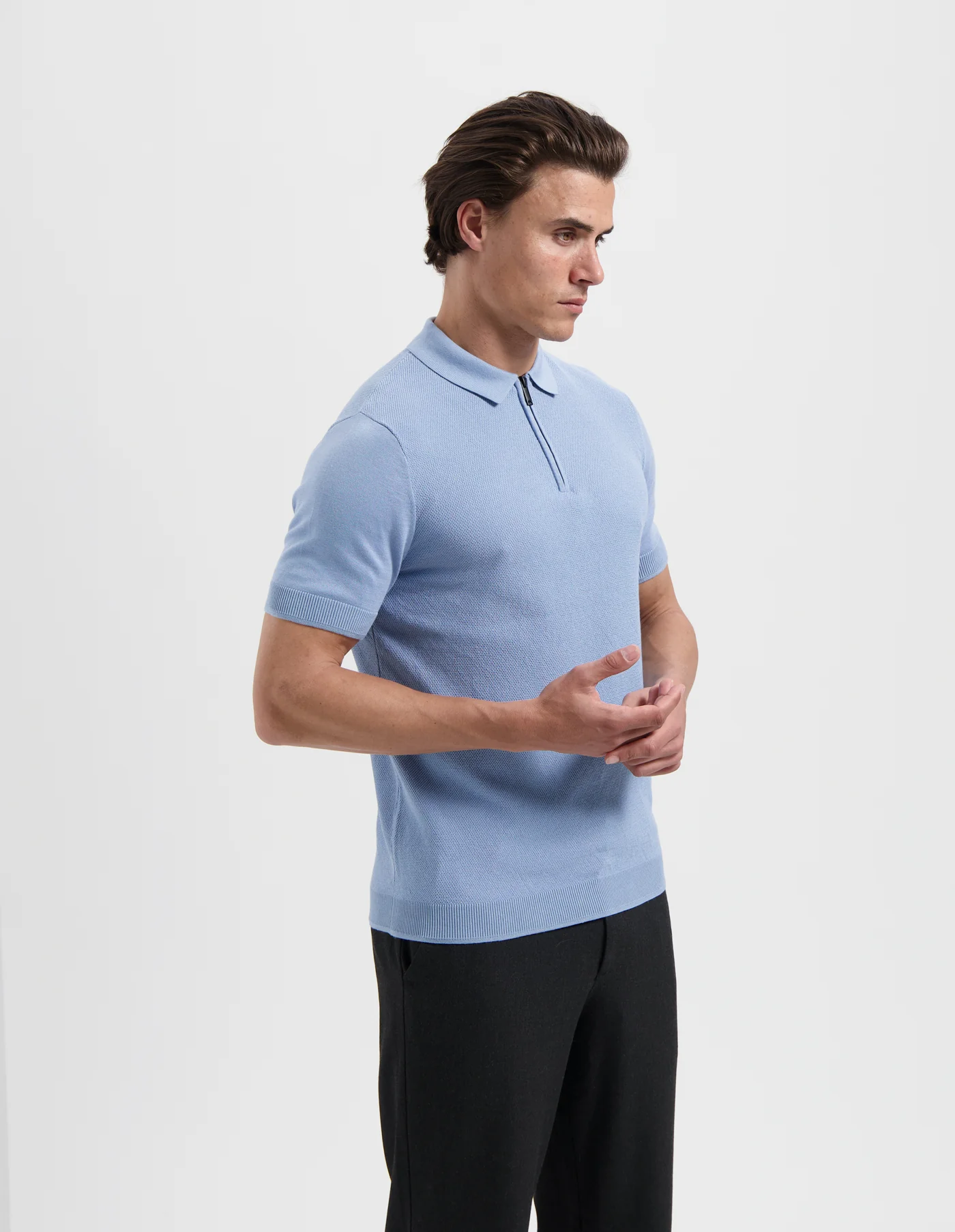 De SONNY van SAINT STEVE is een stijlvolle half-zip polo met een platte kraag en korte mouwen. Vervaardigd uit 100% hoogwaardig katoen, voelt deze polo luchtig en comfortabel aan. Het subtiele rib-detail aan de bovenkant zorgt voor een unieke touch. Shop nu de SONNY van SAINT STEVE en geef je garderobe een moderne upgrade!