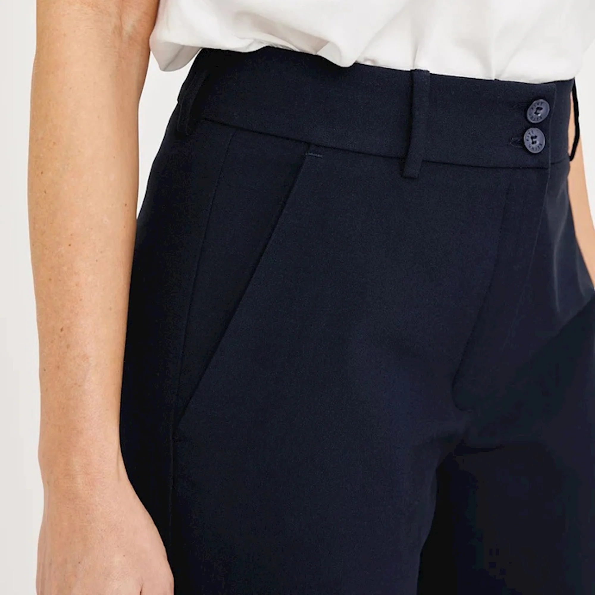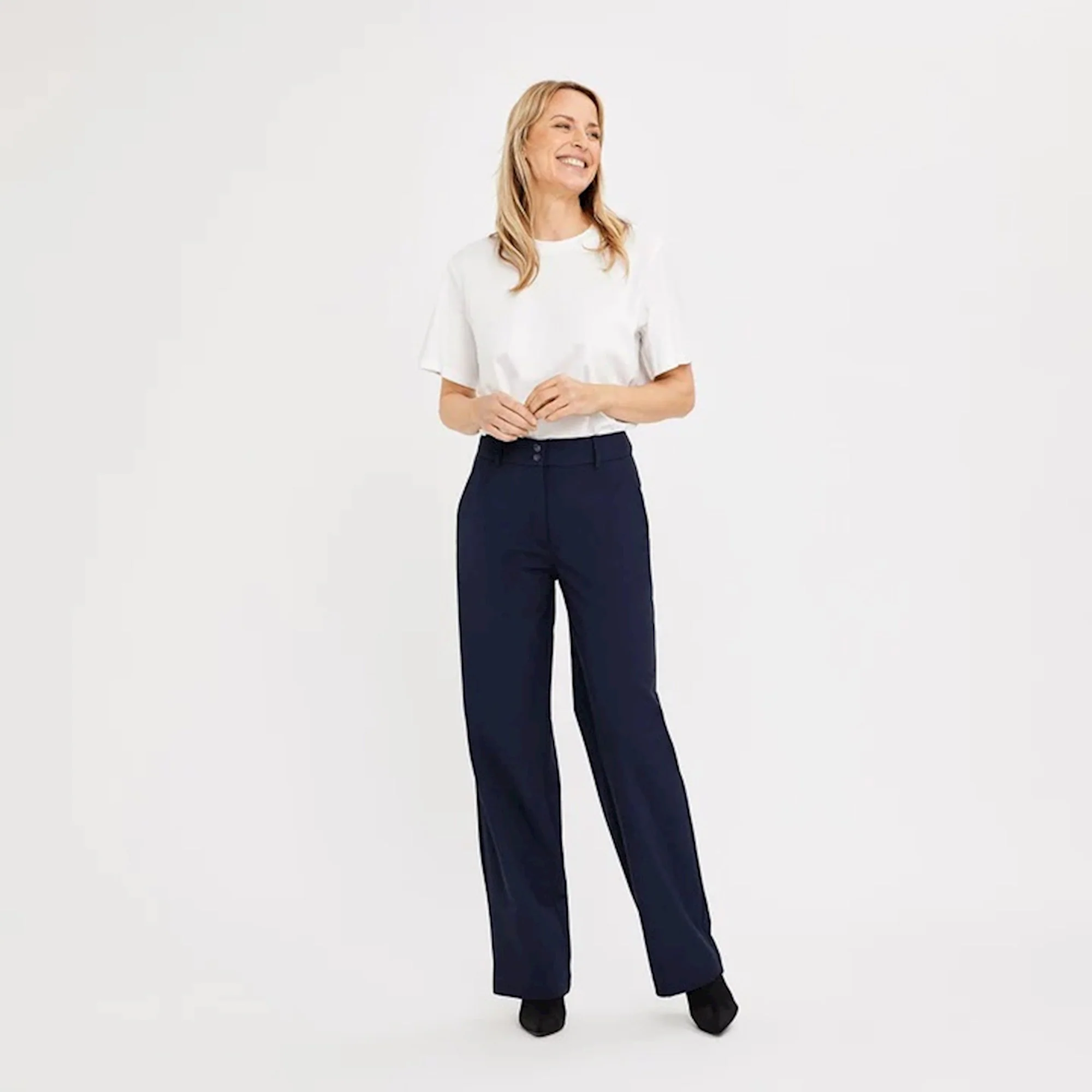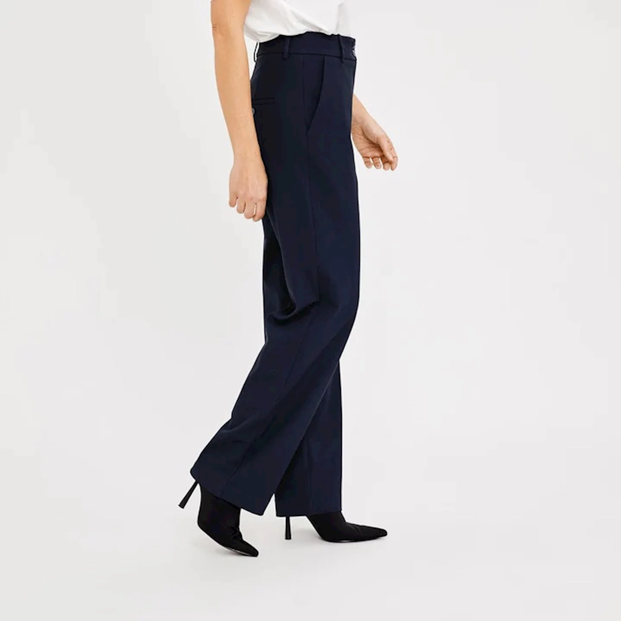 Trendy maar toch tijdloos, dat is de SOPHIA pantalon voor dames van FIVEUNITS. Het is een klassieke, wijdvallende broek met hoge taille. Een broek die niet meer kan ontbreken in iedere garderobe. De broek sluit nauw aan bij de taille en heupen. De wijde pijpen vallen elegant over de benen. Combineer de broek met een lichte top voor een frisse touch. De donkerblauwe kleur van de broek geeft een extra tijdloze touch.