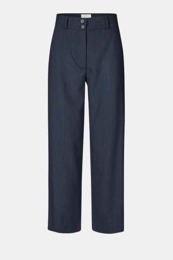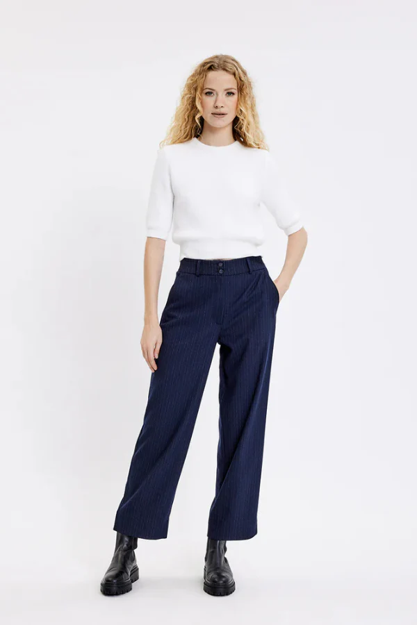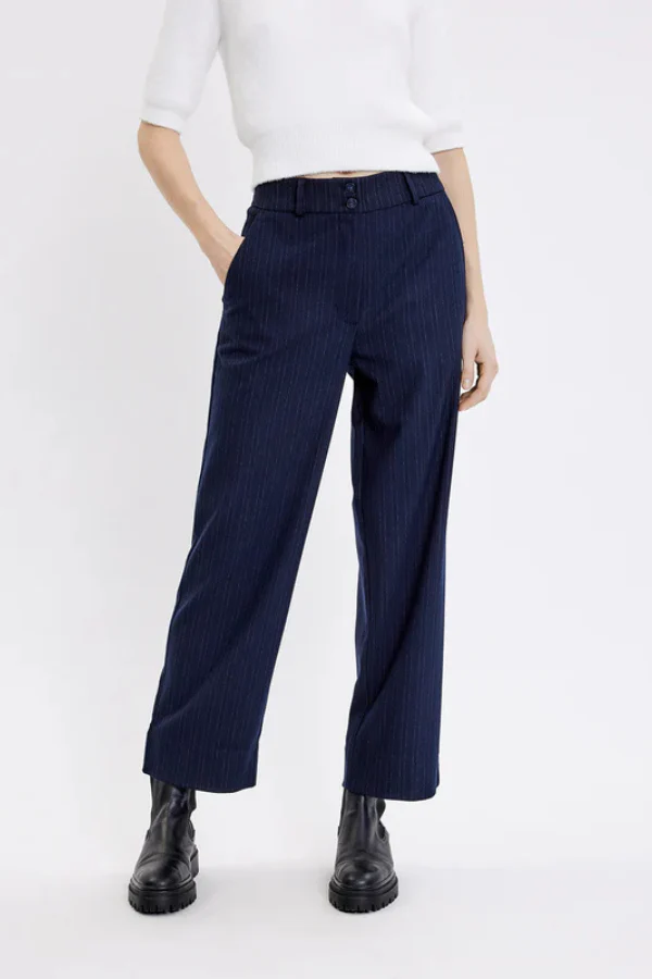 Deze wide-fit broek is een trendy toevoeging aan jouw garderobe. De broek heeft wijde rechte pijpen, een high-waist pasvorm en valt tot onder de enkels. Details van de broek zijn de dubbele knoopsluiting, riemlussen en schuine zijzakken. Shop nu voor een elegante look.