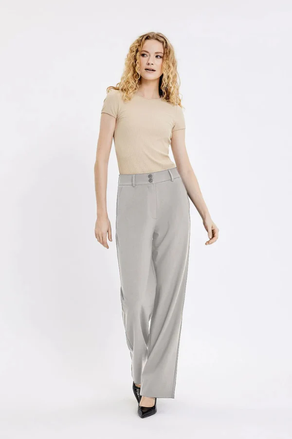LauraFV 285 Pebble Melange van FIVE UNITS is een pantalon in volledige lengte met een strakke, eigentijdse snit. De broek heeft een hoge taille en brede, rechte pijpen die bijzonder elegant staan in combinatie met flats. Afgewerkt met knoopsluiting en paspelzakken voor een verzorgde, op maat gemaakte uitstraling.