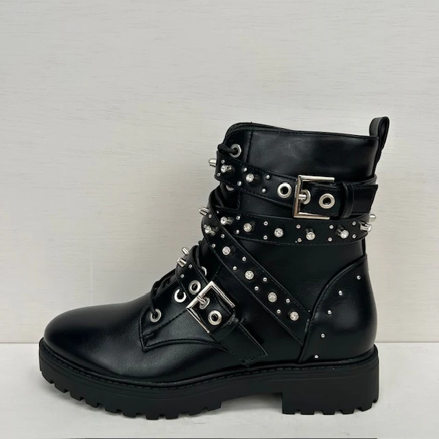 Wat zijn ze gaaf! Deze leatherlook boots zijn stoer afgewerkt met studs en gespjes. Ze vallen op maat en hebben een rits aan de binnenkant voor de eenvoudige instap.