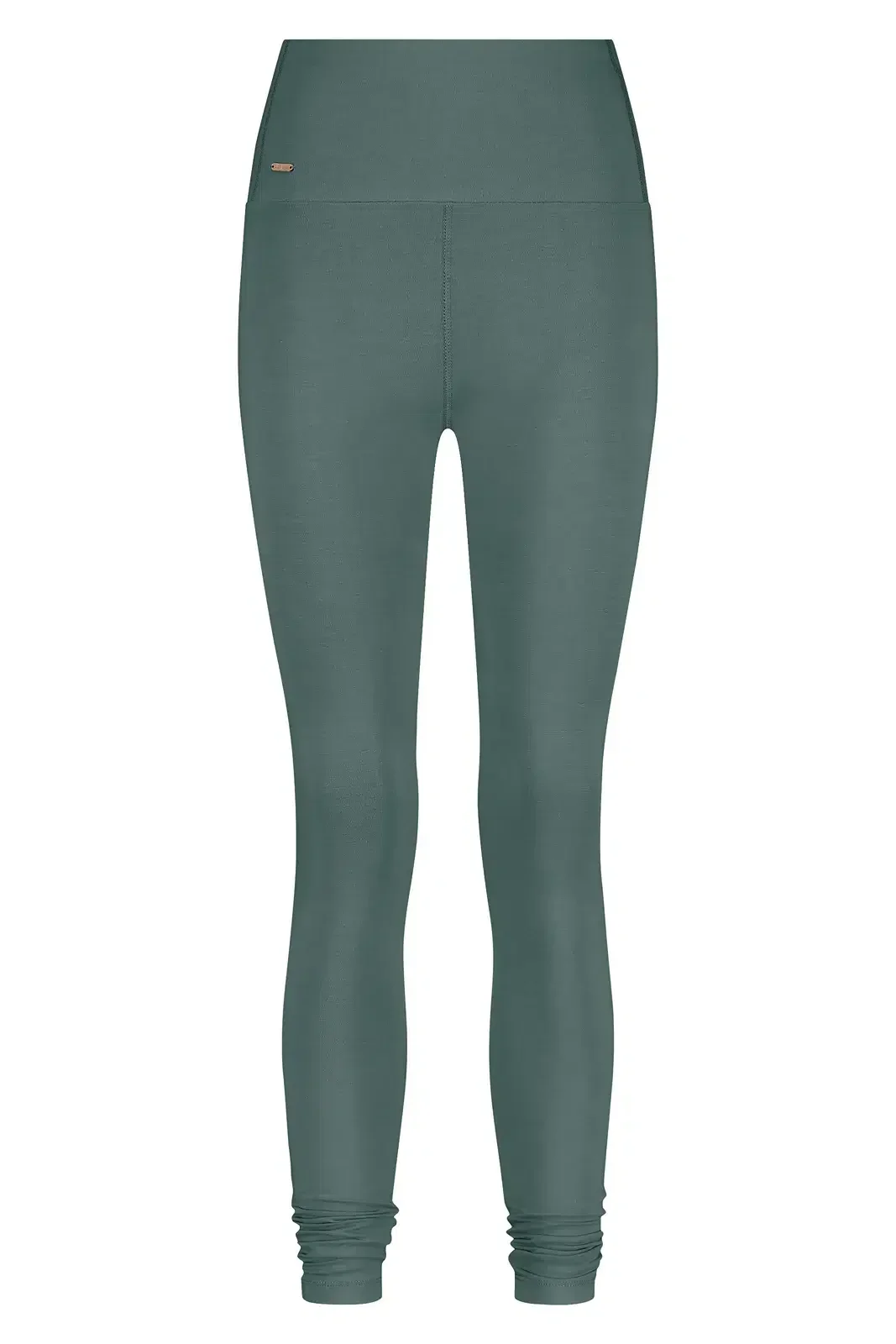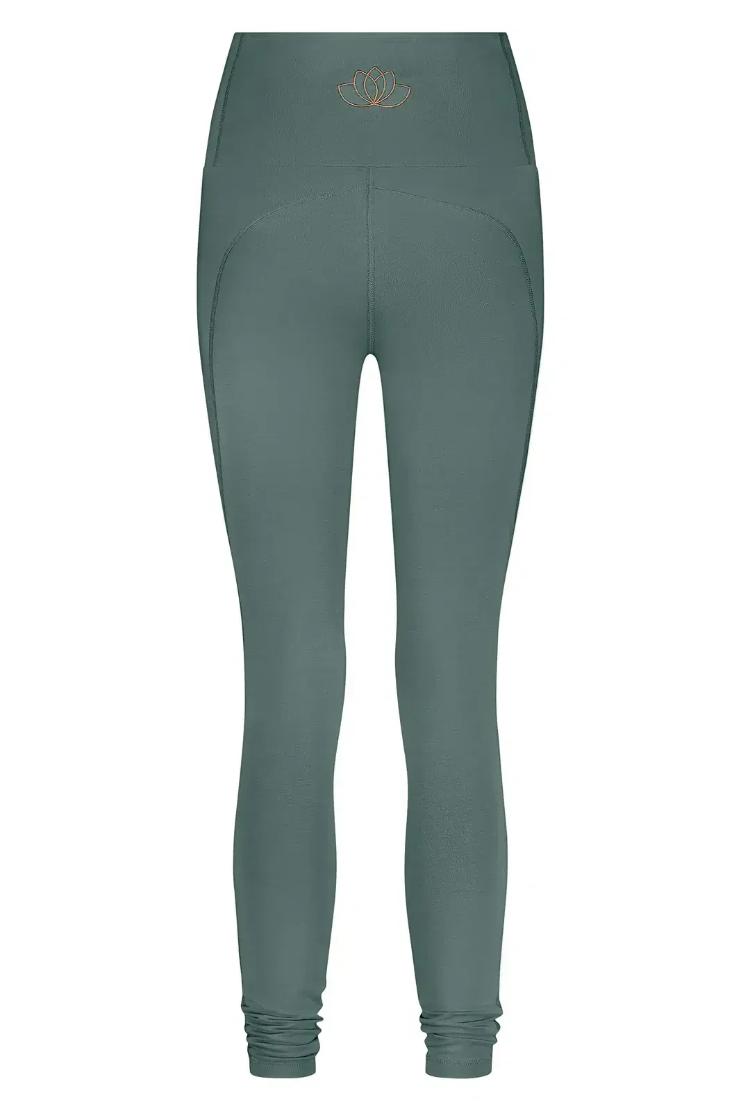 In de Surya yogalegging voel je je prachtig op de yogamat. De groene tint en zachte, duurzame stof van bamboe, biokatoen en lycra ademen en bewegen mee tijdens je practice. De hoge heupband houdt de legging op zijn plek.