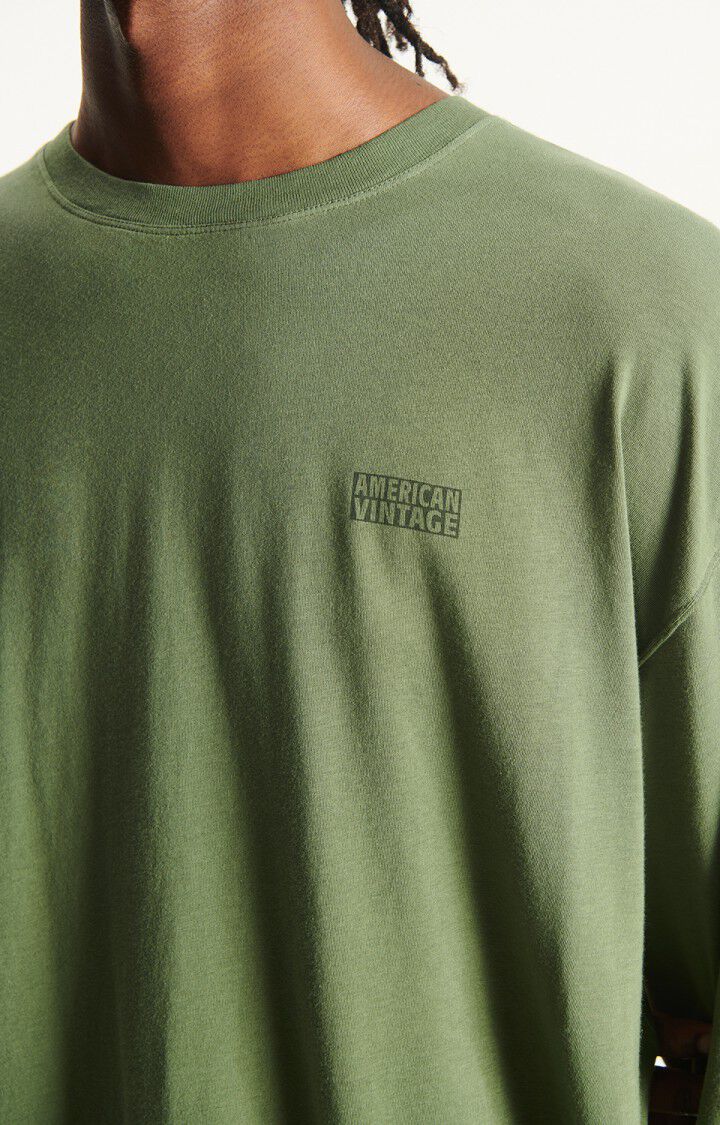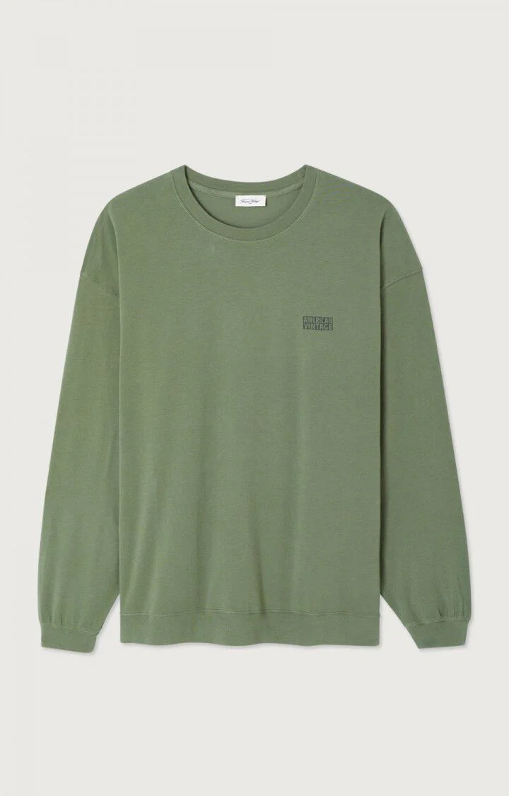Het T-SHIRT ML COL ROND van AMERICAN VINTAGE. Deze longsleeve met ronde hals heeft een tijdloze, casual look in een subtiele groentint die moeiteloos te combineren is. Gemaakt van 96% katoen en 4% elastaan voor een zachte touch en comfortabele stretch. Perfect onder een jasje of los op een jeans voor een relaxte everyday outfit. Shop nu bij ANTRACITE!