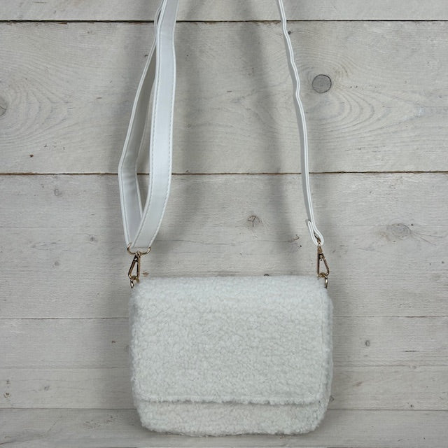 Mega leuk teddy tasje in de kleur beige. Het tasje heeft een groot vak met ritssluiting en nog een kleiner vakje op de voorkant. De band is verstelbaar.