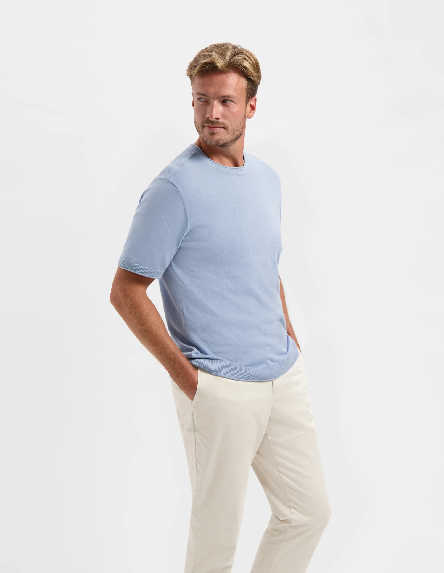 De TEUN van SAINT STEVE is het perfecte knitted T-shirt voor je zomergarderobe. Dit T-shirt heeft een ronde hals en een normale, rechte pasvorm, gemaakt van luchtig 100% katoen voor een extra comfortabele fit. De mouwen en hals zijn afgewerkt met een subtiel rib-detail voor een verfijnde uitstraling. Shop nu de TEUN van SAINT STEVE en voeg dit veelzijdige T-shirt toe aan je collectie!