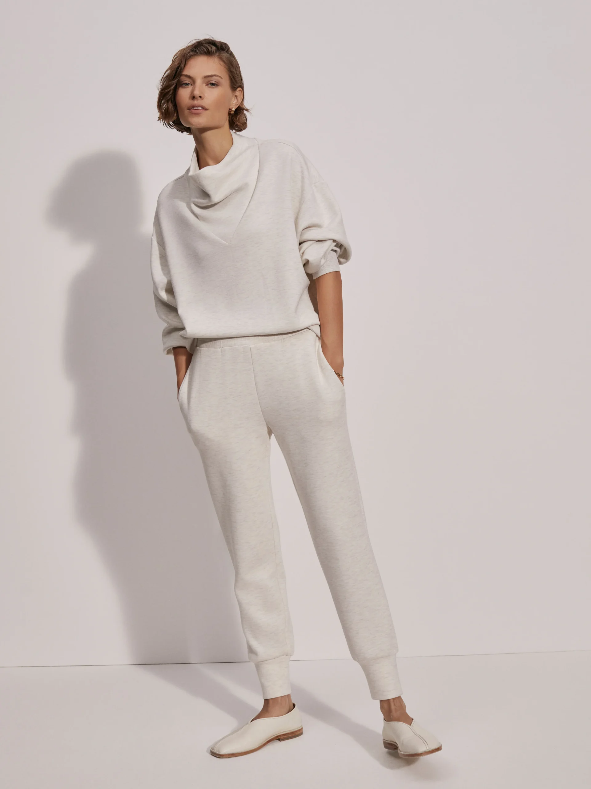 Deze comfortabele broek van VARLEY is gemaakt van het super zachte DoubleSoft materiaal van het merk. De broek heeft een slim-fit pasvorm en valt tot net boven de enkels. Details van de broek zijn de elastische tailleband met intern trekkoord, de zij- en achterzakken en de geribde zoomen. Shop nu in deze licht grijs/witte kleur.
