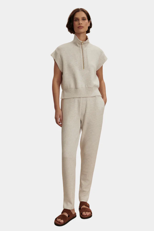 De SLIM ZIP HEM PANT van VARLEY. Deze broek in de kleur ivory marl heeft een slank silhouet met subtiele ritssluitingen bij de enkels, wat zorgt voor een moderne en verfijnde uitstraling. Gemaakt van een comfortabele mix van viscose, polyester en elastaan die soepel valt en licht stretcht. Draag met een zachte knit of een blazer voor een stijlvolle everyday look. Shop ‘m nu online!