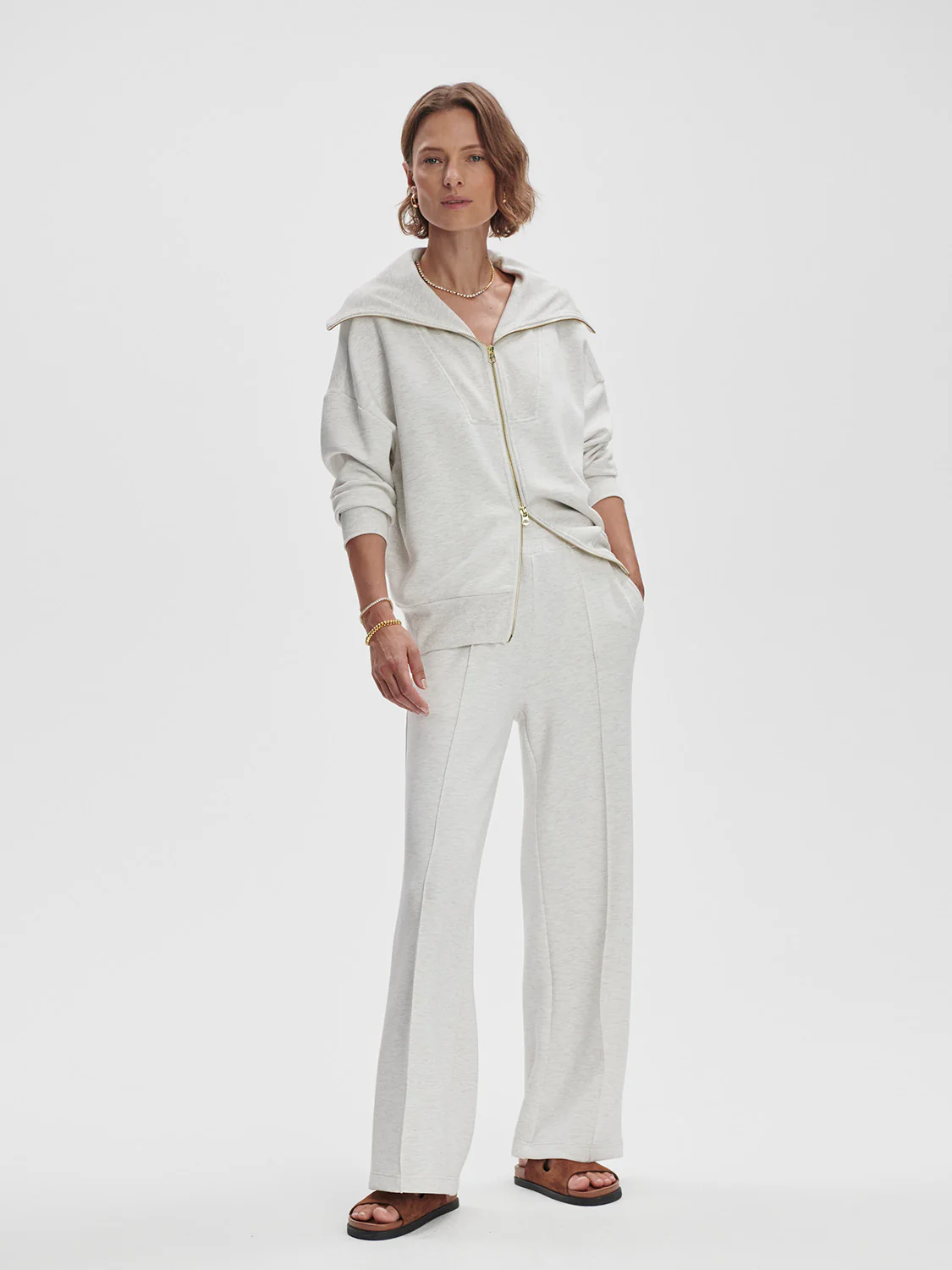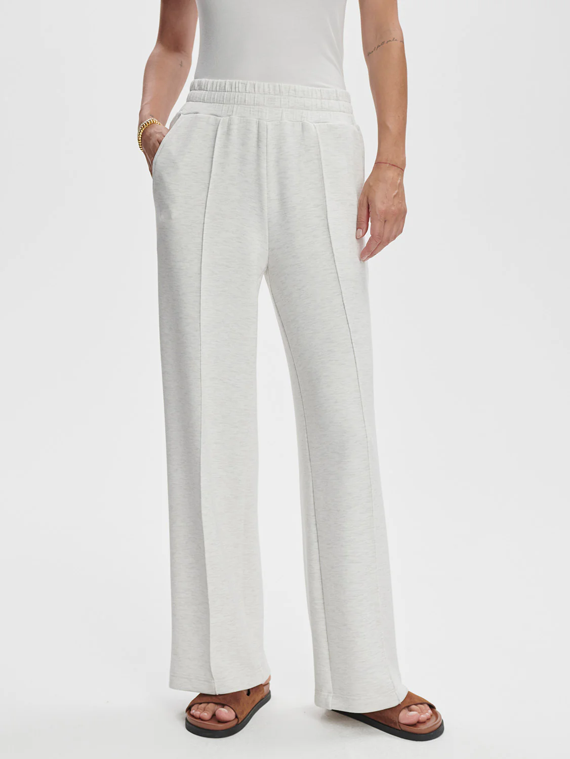 De Wide-Leg Pant 28″ van VARLEY is een moderne update van de geliefde Haddon-stijl, uitgevoerd in het kenmerkende DoubleSoft®-materiaal. Deze broek combineert ultiem comfort met een stijlvolle uitstraling dankzij de hoge taille, wijde pijpen en verfijnde pink tuck-details. De elastische tailleband met interne trekkoord zorgt voor een perfecte pasvorm. Een veelzijdige essential die moeiteloos met elke look te combineren is.