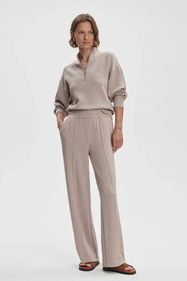 The Wide Leg Pant 28″ van VARLEY combineert comfort en stijl in de kenmerkende DoubleSoft® stof. Met een hoge taille, wijd uitlopende pijpen, een elastische tailleband met intern trekkoord en subtiele pink tuck details, is deze broek een veelzijdige essential voor elke garderobe. Shop nu!