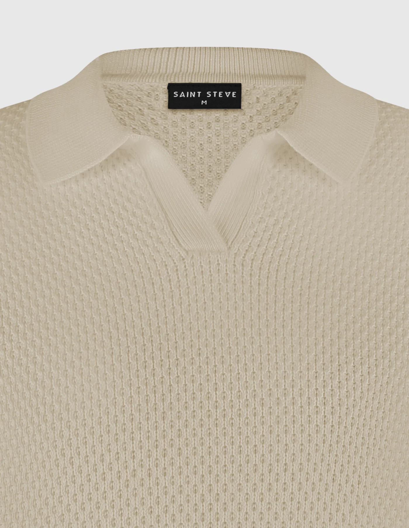 Ga voor een trendy look met de THOMAS van SAINT STEVE, een polo met korte mouwen en zonder knoopsluiting. Deze polo is afgewerkt in een uniek rib-design en heeft een normale, rechte pasvorm. Het luchtige 100% katoen zorgt voor een extra comfortabele fit. Shop nu de THOMAS van SAINT STEVE en voeg deze stijlvolle polo toe aan je garderobe!