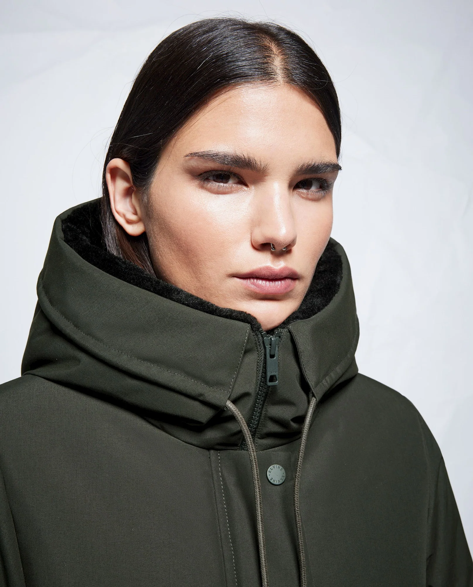 De TIRIL winterjas voor dames is een echte bestseller op de webshop. Deze terugkomende winterjas is perfect voor strenge winters en houd je dan ook warm tijdens de kou en droog tijdens een harde regenbui. De capuchon kan worden aangetrokken met het trekkoord en de zakken in de taille zijn voorzien van een onzichtbare ritsen. Een extra verrassing bij deze jas zijn de zakken, capuchon en de rug waar een ultra zachte fleece in is verwerkt. Shop deze heerlijke winterjas nu in de prachtige donker groene kleur.