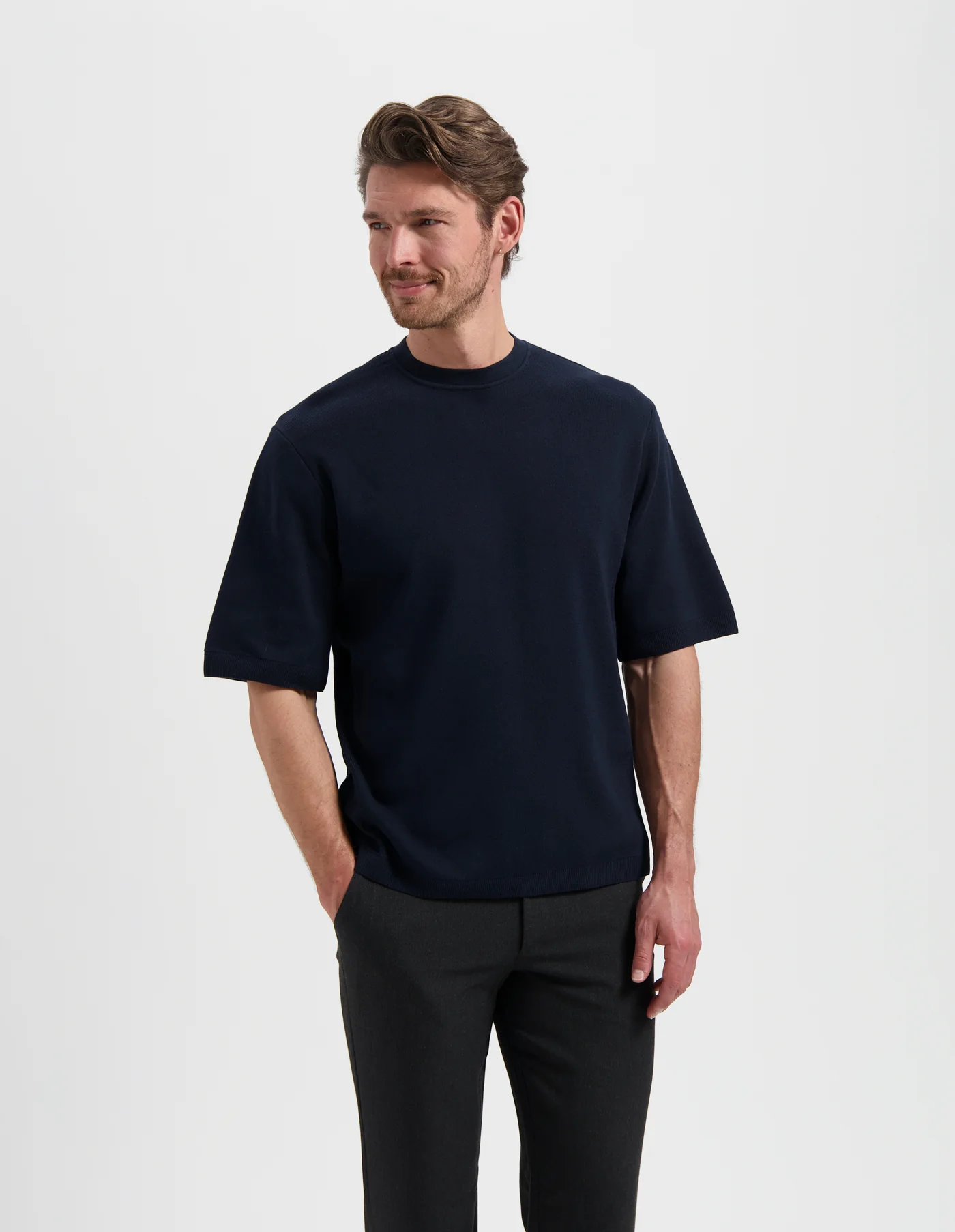 De TJEERD van SAINT STEVE is het perfecte basic knitted T-shirt voor je garderobe. Dit T-shirt heeft een normale, rechte pasvorm en is gemaakt van luchtig 100% katoen voor een comfortabele fit. Combineer de TJEERD met een jeans of pantalon en creëer je eigen stijlvolle look. Shop nu de TJEERD van SAINT STEVE voor een veelzijdige toevoeging aan je collectie!