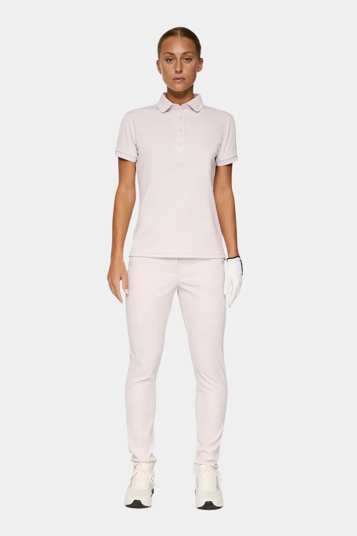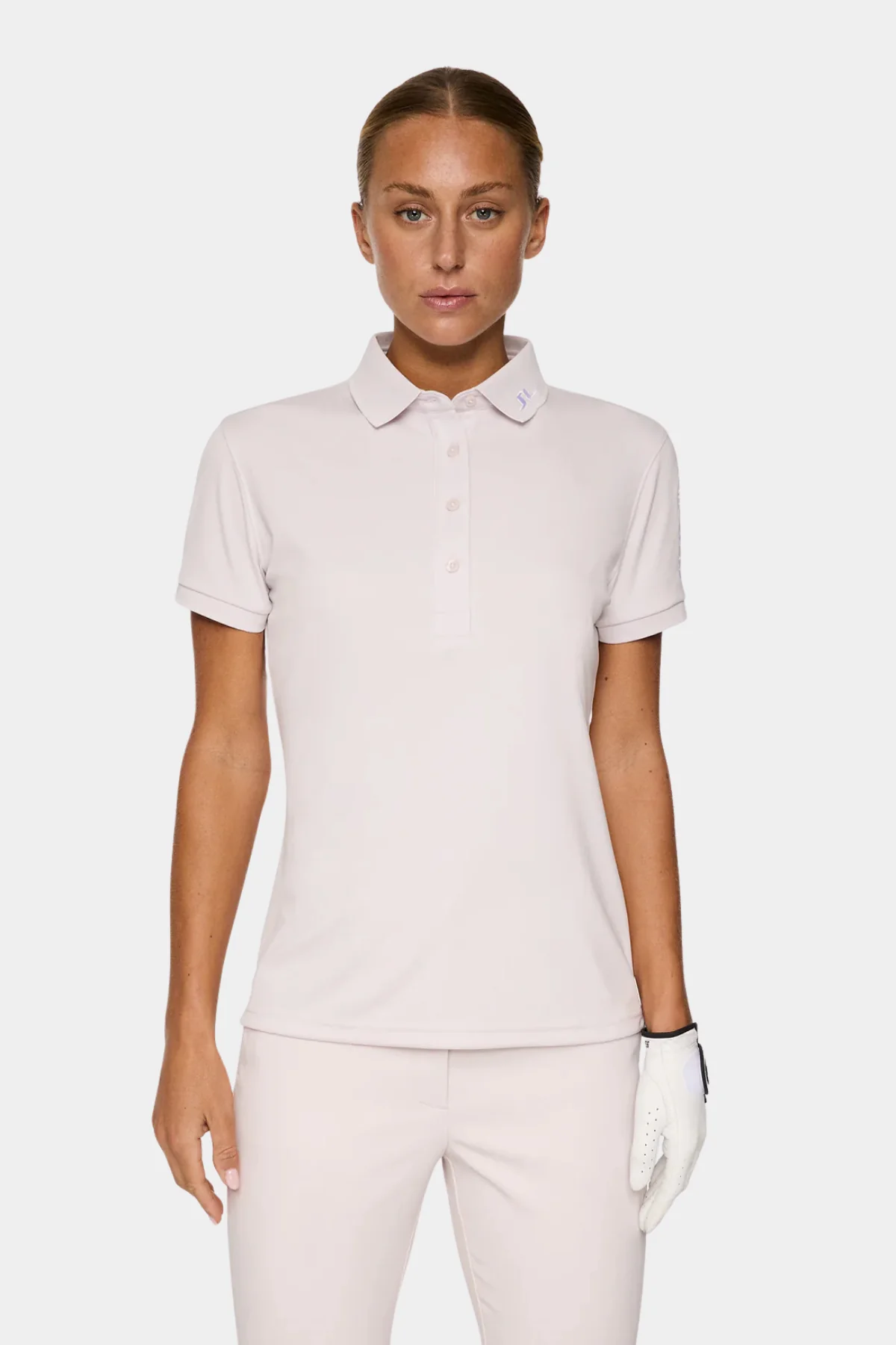 De TOUR TECH POLO van J.LINDEBERG GOLF. Deze stijlvolle damespolo combineert sportiviteit met een vrouwelijke uitstraling dankzij de subtiele lila accenten en slanke pasvorm. Gemaakt van 100% polyester met ademende, sneldrogende eigenschappen perfect voor een actieve dag op de baan. Draag ‘m met een witte golfskort of een casual broek voor een moderne sportieve look. Shop nu jouw nieuwe favoriete golf essential!