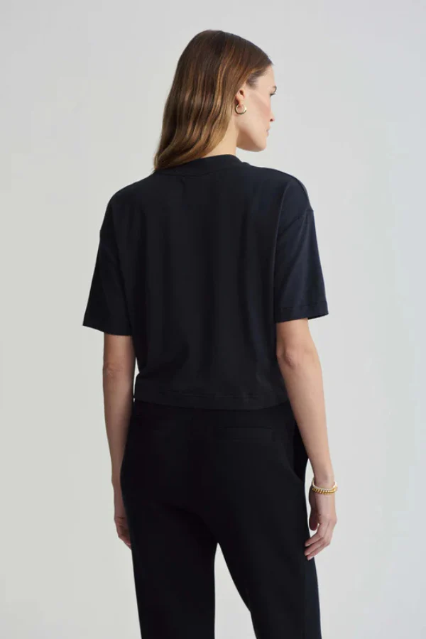 De Venice Easy Tee in Black is een chique en cropped versie van de klassieke Leighton. Gemaakt van zacht Modal Jersey, biedt dit t-shirt een relaxed fit en een tijdloze ronde hals. Het valt perfect op de taille, waardoor het zich gemakkelijk laat in- of uitstoppen voor een moeiteloze stijl. De Venice Easy Tee is een veelzijdige must-have die zowel casual als gekleed gedragen kan worden.