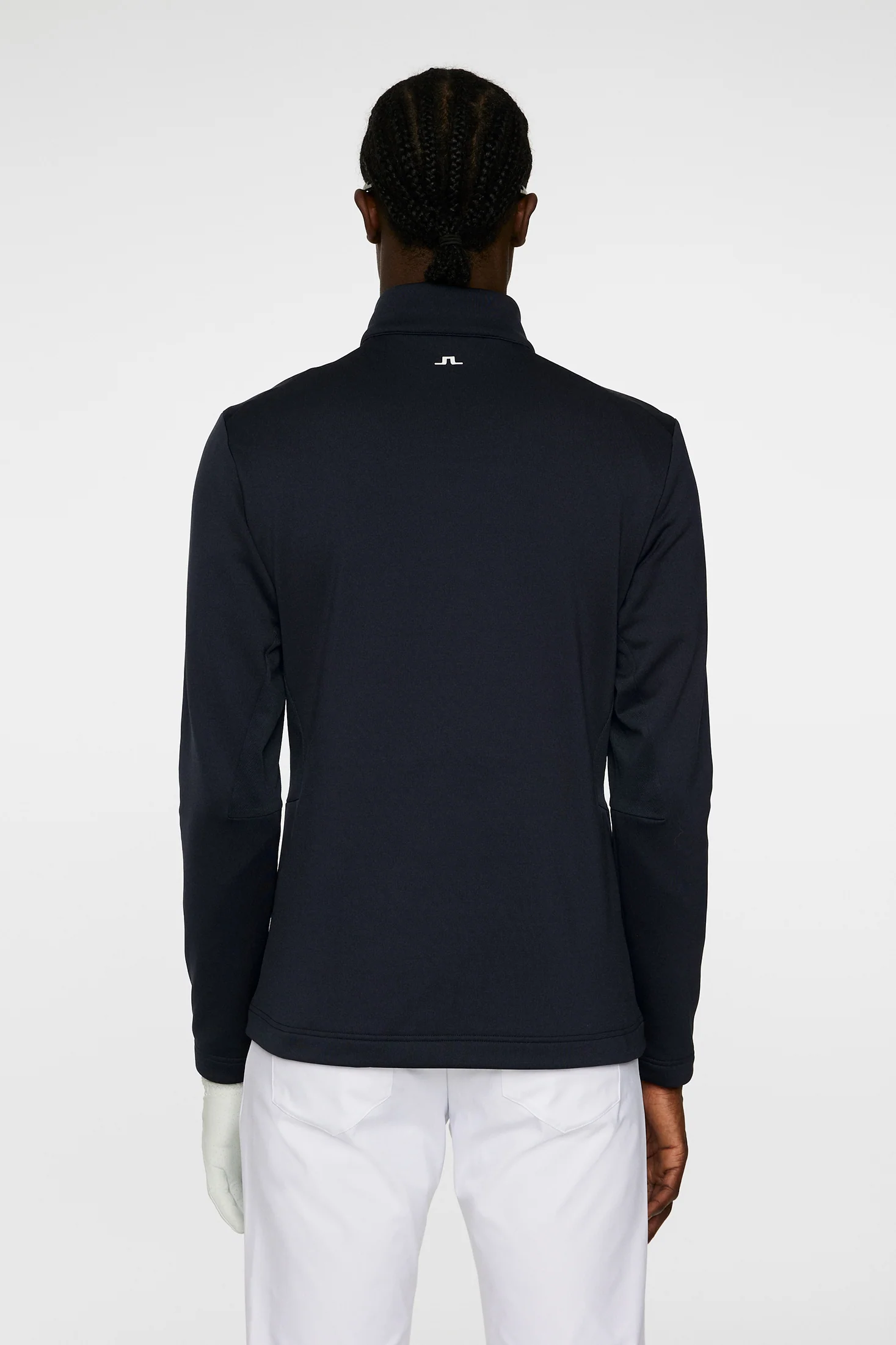 De VINNIE QUARTER ZIP MID LAYER NAVY van J.LINDEBERG is een sportieve en lichtgewicht tussenlaag met een moderne kwart-ritssluiting. Gemaakt van een sneldrogende en ademende technische jersey die optimale bewegingsvrijheid biedt. De zachte stretchstof voelt comfortabel aan en is perfect als laag onder een jas of over een T-shirt. Combineer met een sportieve broek en sneakers voor een actieve, stijlvolle look. Shop nu deze functionele essential voor sport en vrije tijd!