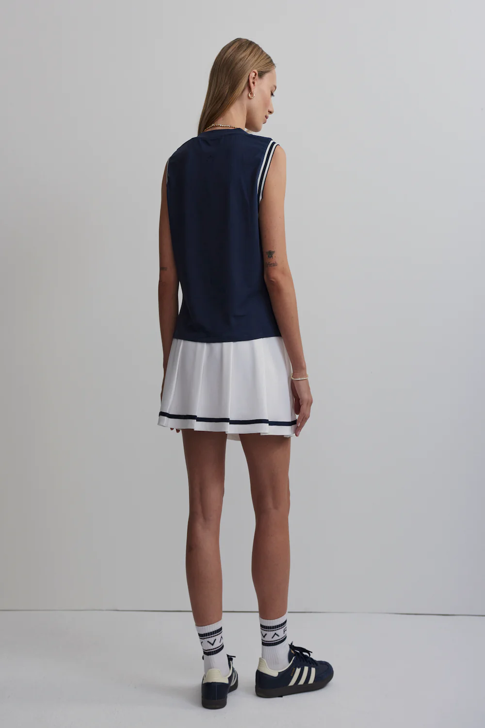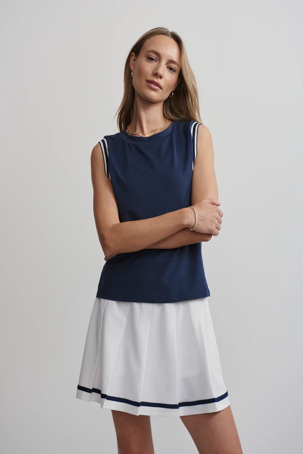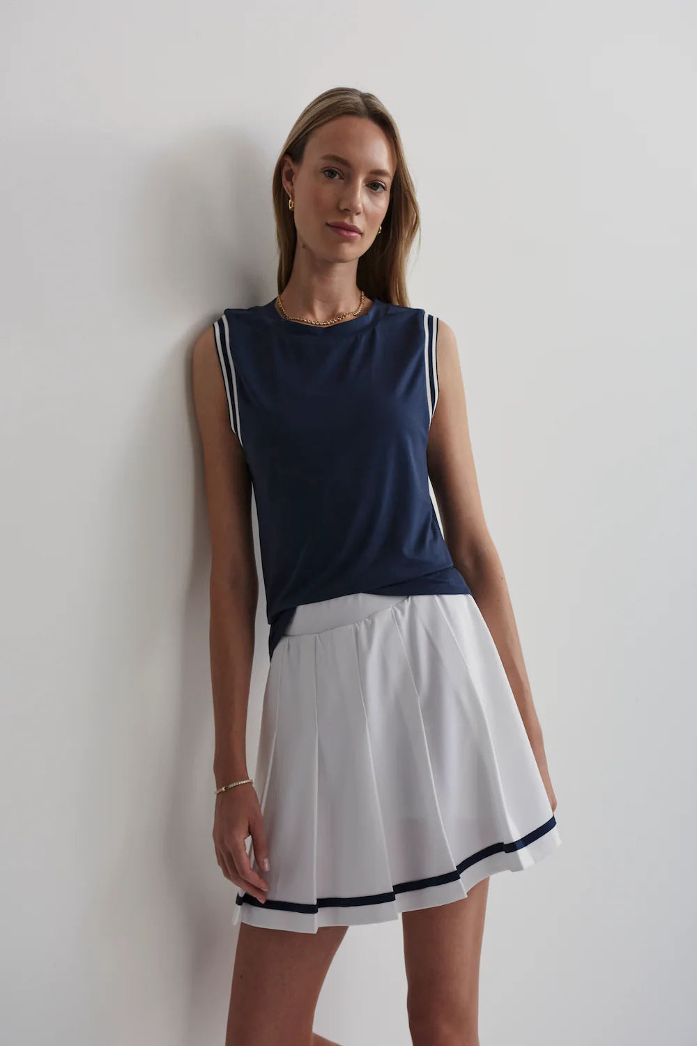 Deze tanktop in blue nights van VARLEY is een veelzijdige essential voor elke dag. Dit tanktop heeft een slanke pasvorm met een klassieke ronde hals en iets verlaagde armsgaten, wat zorgt voor optimale bewegingsvrijheid. De subtiele streepdetaillering voegt een vleugje nostalgische elegantie toe aan het sportieve ontwerp.